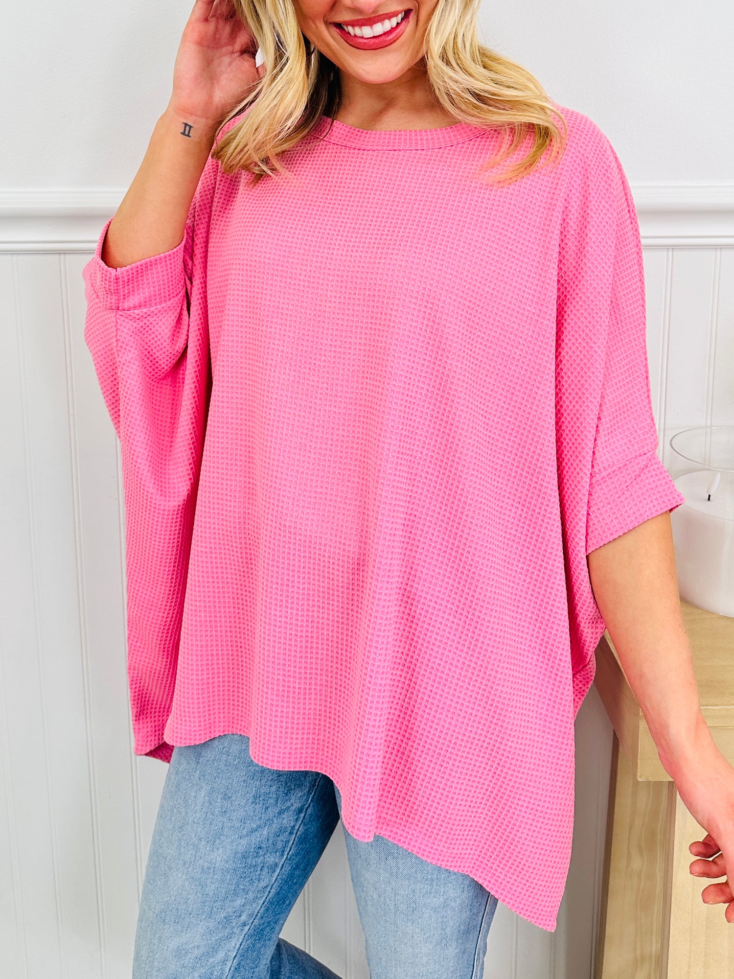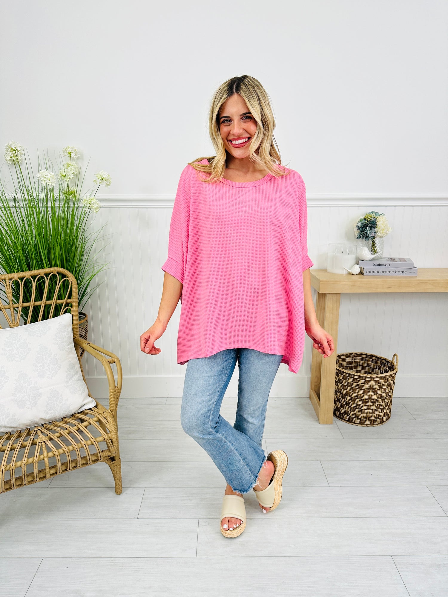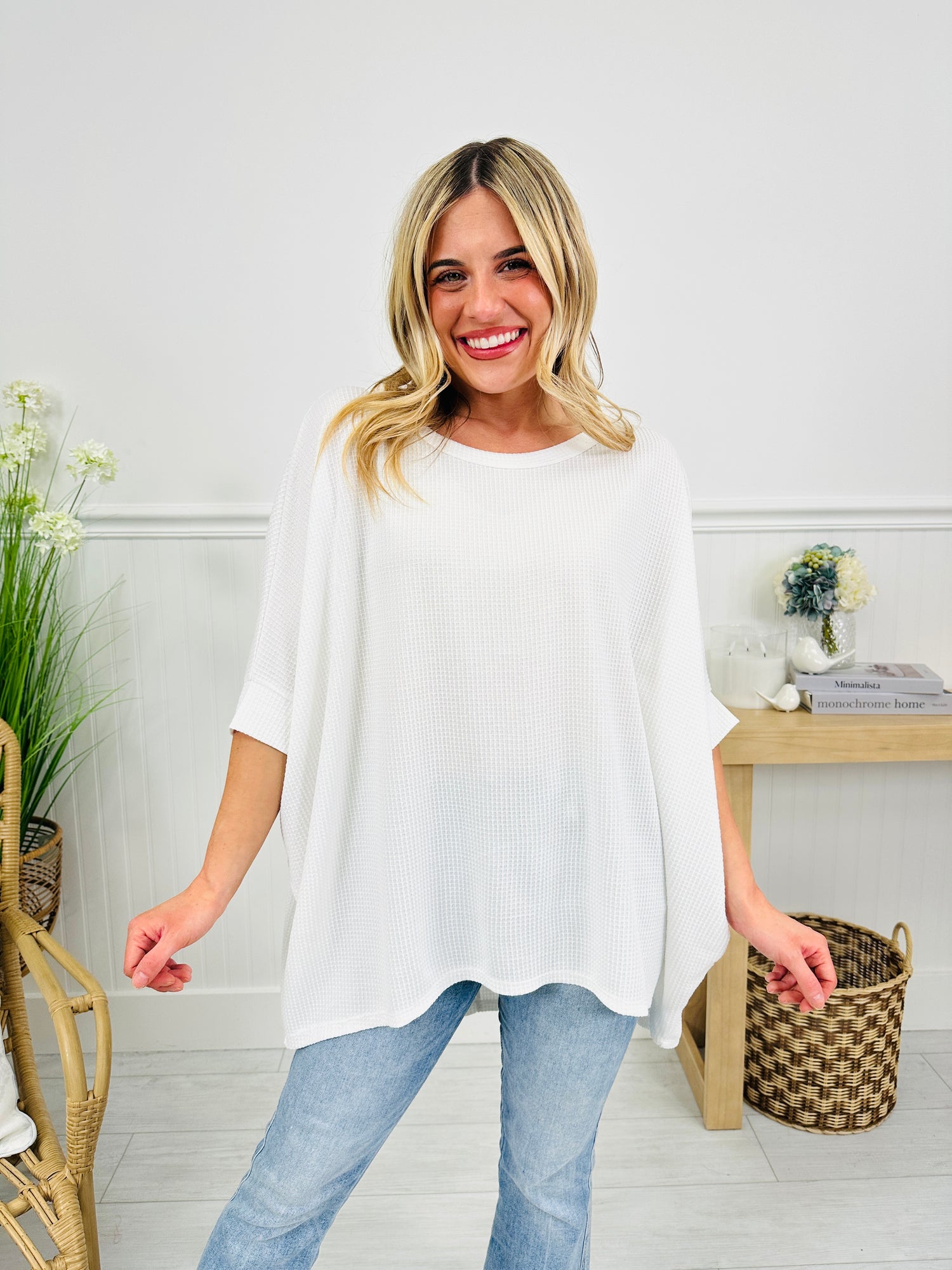 This top is all about spring and a must have in your wardrobe this season. This dolman style top is one of our best selling silhouettes because of it's relaxed fit that's flattering on every body type. This top offers an easy, comfortable fit that drapes beautifully without feeling oversized. It's lightweight and perfect for wearing throughout the whole season.