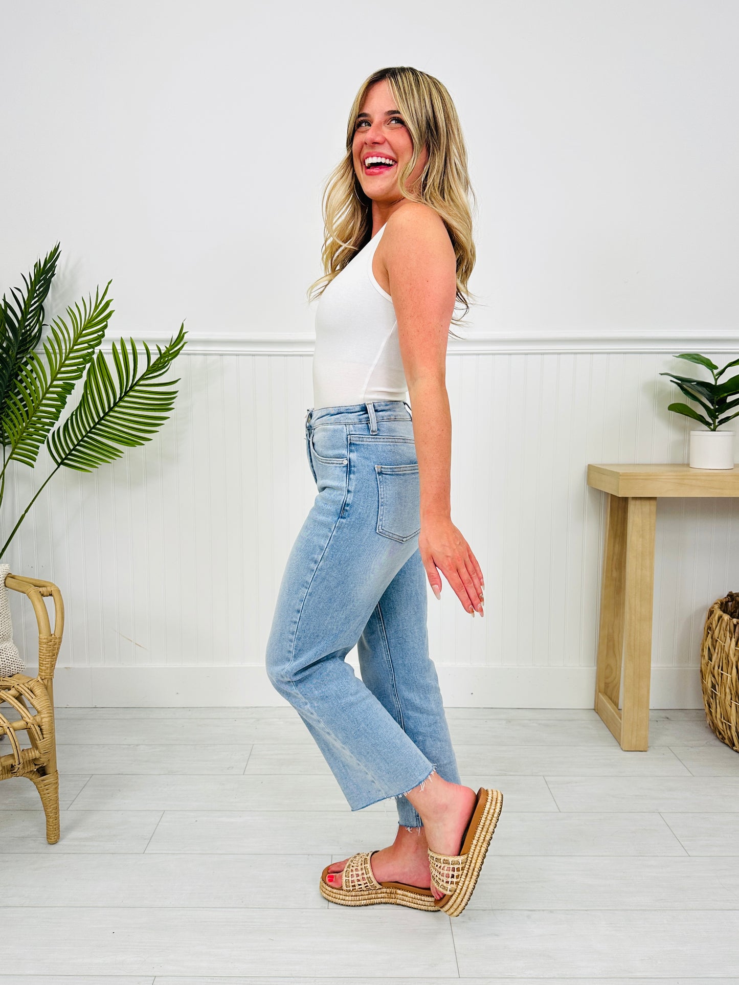 We are obsessing over wide leg crops this fall and these are the most versatile pair, yet! They are the perfect sneaker jean but also look adorable with your favorite fall booties! These jeans feature our viral tummy control panel that sucks you in and slims you out in all the right places for a confidence boost you didn't know could exist. They are so stretchy and hold their shape all day long-- you do not have to worry about these sagging. They are buttery soft, too!