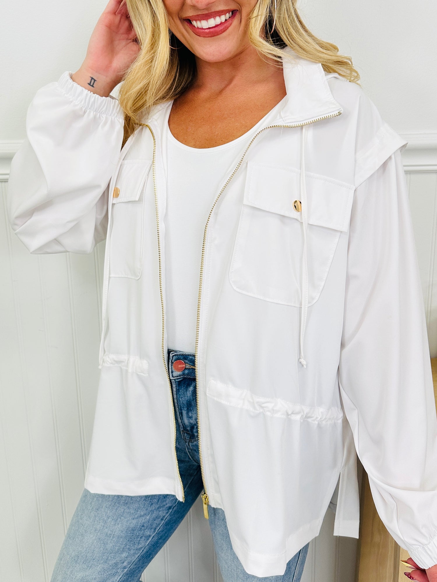 The details on this jacket take it to the next level. It's designed with functional pockets and a slimming cinching option at the waist so you can customize the shape when you want a more defined look. A subtle side slit adds movement and comfort, keeping it effortless to style for a put together look. Easy, polished, and endlessly wearable, this is the spring jacket you’ll want to grab for every cool day this season. It's available in four colors and we recommend getting more than one so you can wear it again and again.
