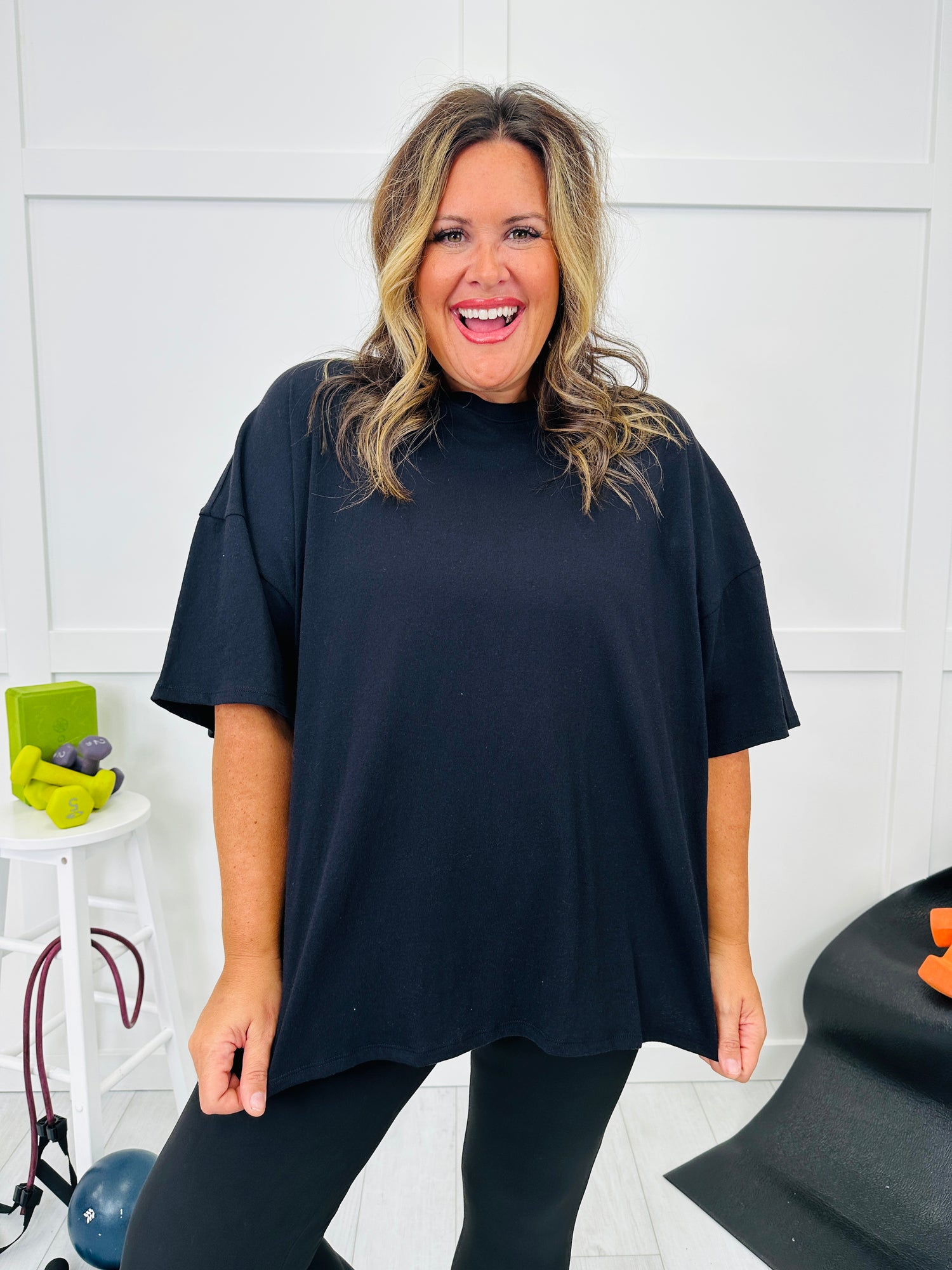 This easy top is all about a soft, textured finish with a relaxed, roomy fit you can throw on and go. The wide short sleeves and drop-shoulder shape keep it feeling effortless, while the simple crew neckline gives it that clean, everyday look. It comes in several colors, making it an easy favorite to grab in more than one.