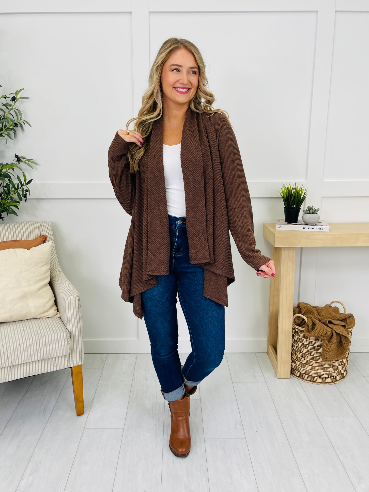 This cardigan offers a cozy and chic addition to your wardrobe with its soft texture and draped open front. The relaxed fit ensures comfort, while the longer silhouette adds a touch of effortless style. Available in multiple colors, it’s perfect for layering over a tee or sweater to complete any outfit.