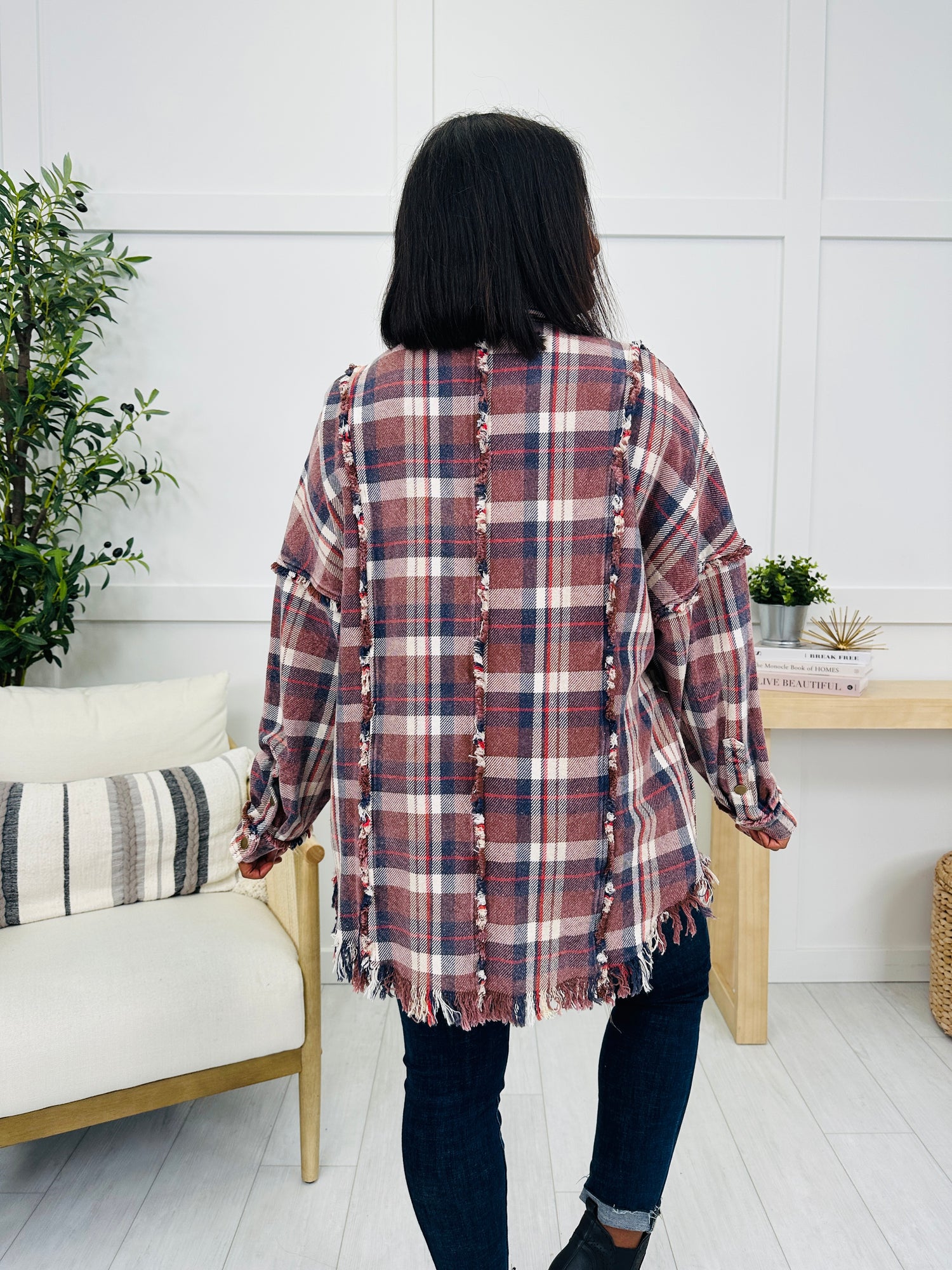 Bring bold personality to your look with this statement-making plaid shacket. Featuring a vibrant plaid pattern, fringed hem details, and a front button closure, it’s a piece that’s as fun as it is versatile. Style it over your favorite basics for an effortlessly eye-catching outfit that’s full of texture and charm.