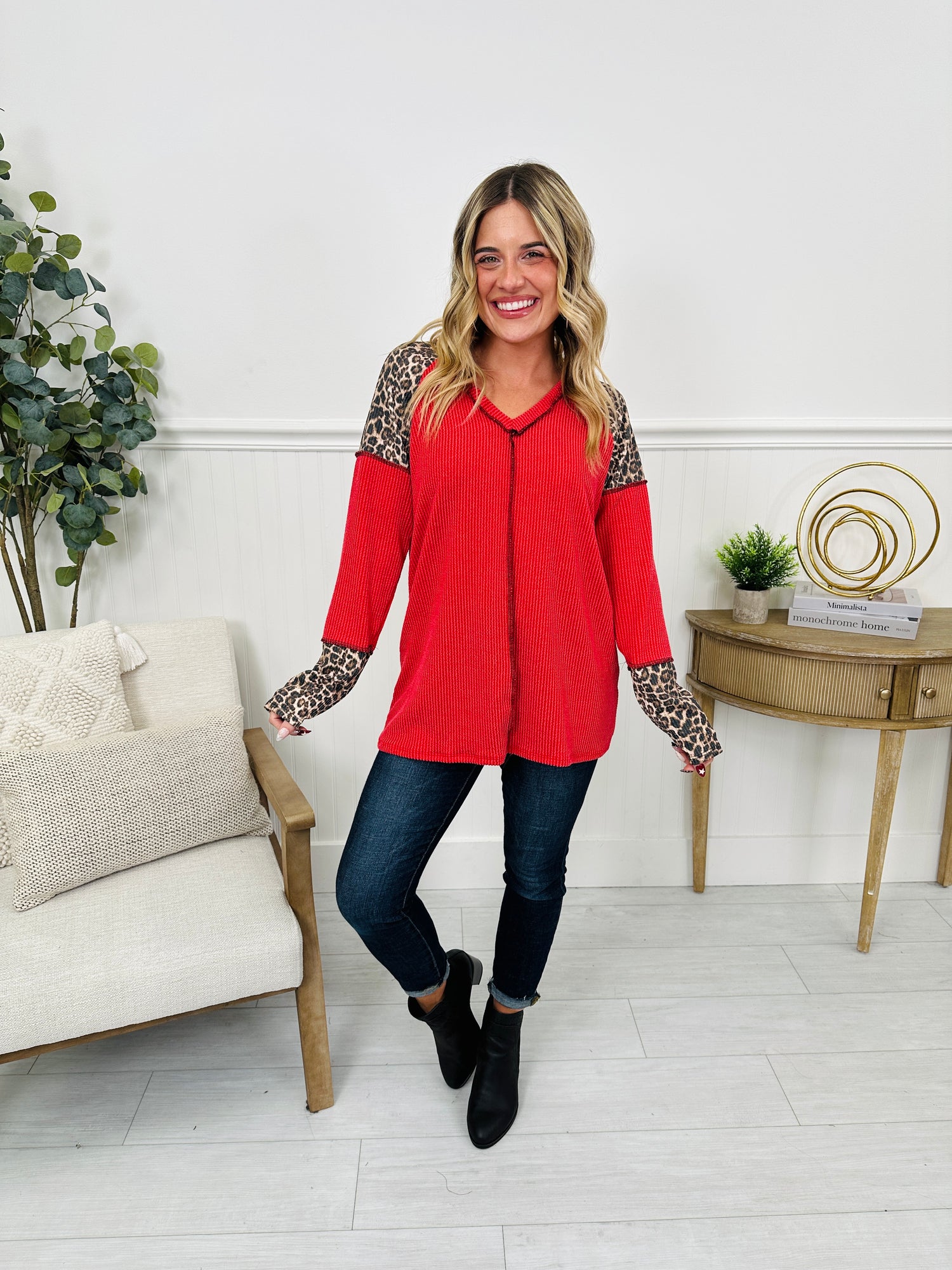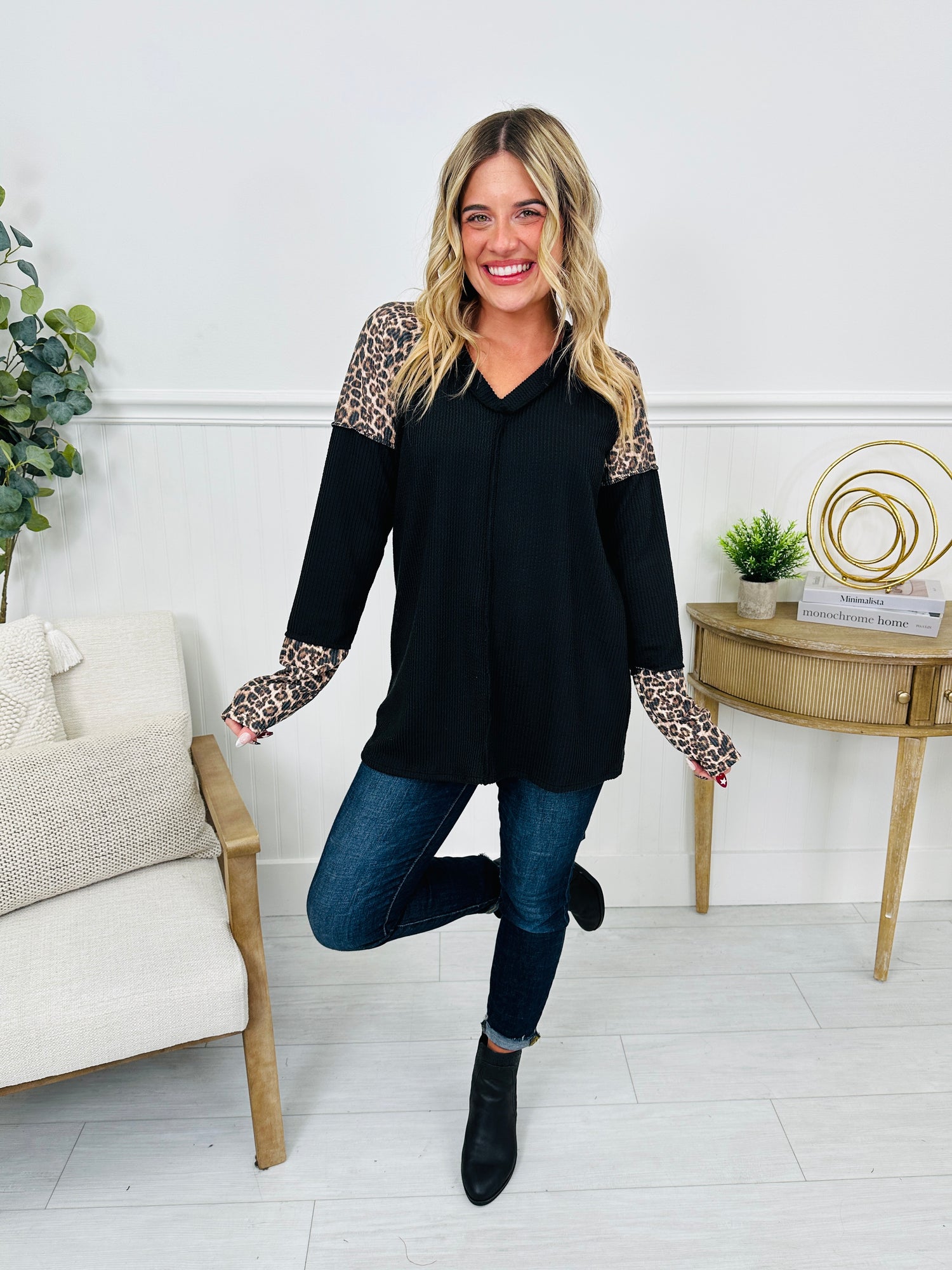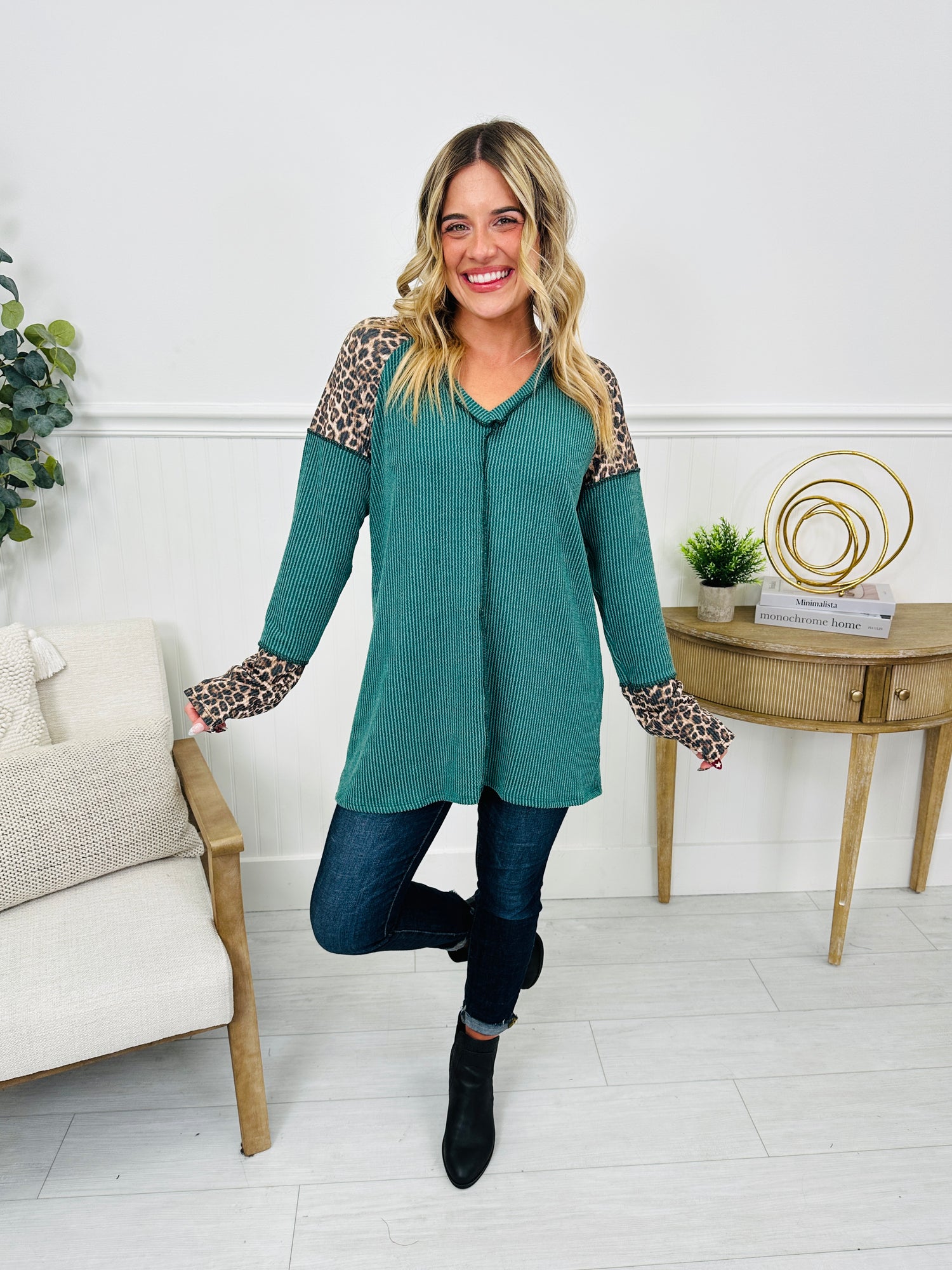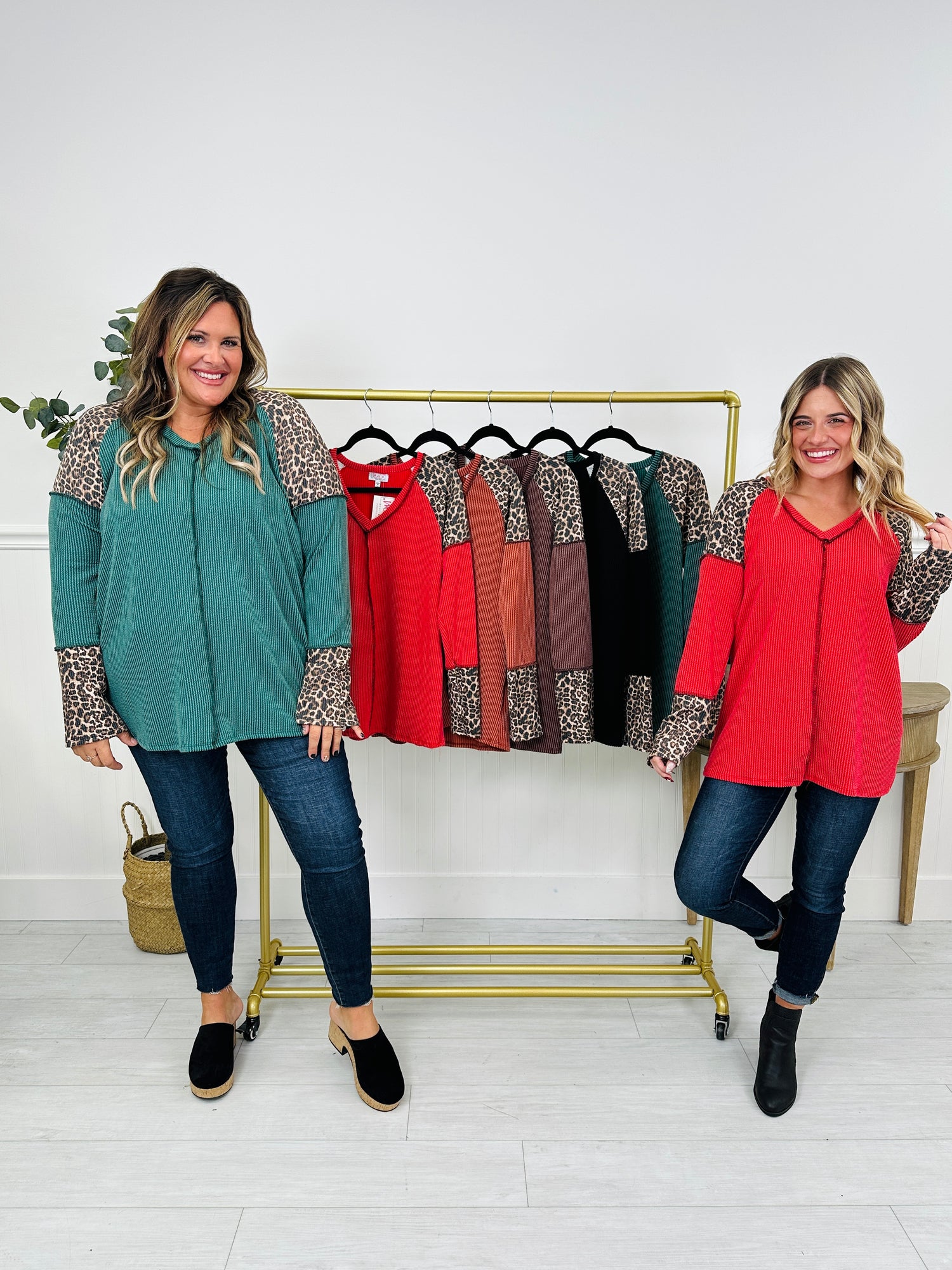 The leopard contrast pairs perfectly with all five colors of this top giving it a bold and effortless look. The length of this top is perfect for pairing with both jeans and leggings and that's always a win in our book! Dress it up with booties and jeans or pair it with a vest and leggings for multiple, versatile looks. And at only $38, you should probably add multiple colors to your cart while you still can!