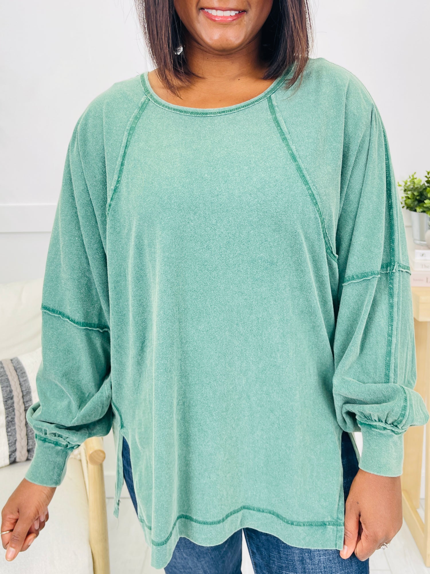 This comfy top combines style and ease with its soft, cozy fabric and relaxed fit. The side slits provide extra movement, while the simple yet chic design makes it perfect for casual days or layering. Available in several colors, it’s sure to be a versatile addition to your wardrobe.