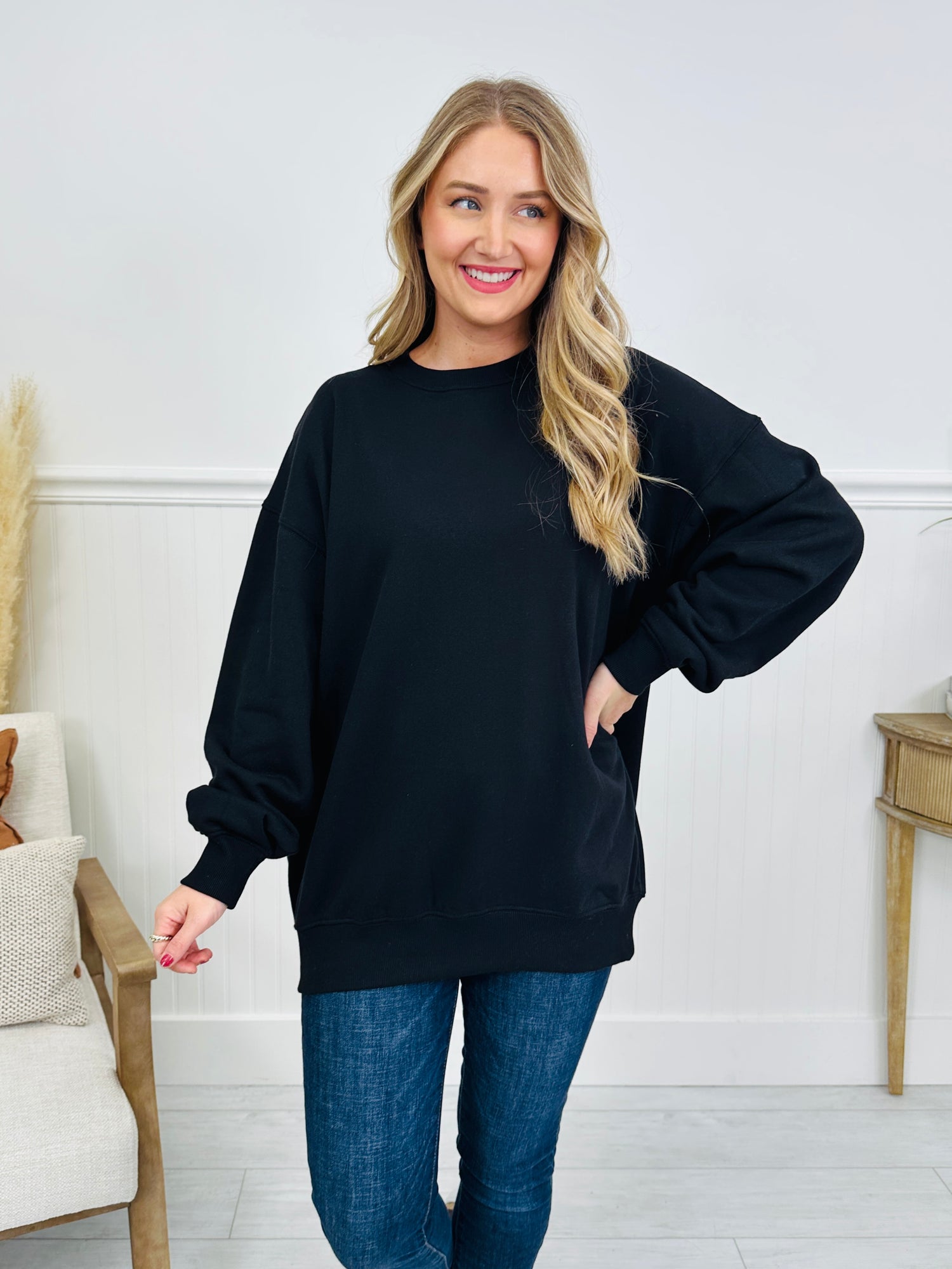 This laid-back sweatshirt is the ultimate everyday essential, featuring a classic crew neckline that keeps the look timeless and easy to style. Its relaxed, slouchy fit makes it perfect for cozy days or casual outings, while the ribbed hem and cuffs add a polished finish. Available in several versatile colors, it’s a must-have staple you’ll reach for season after season.