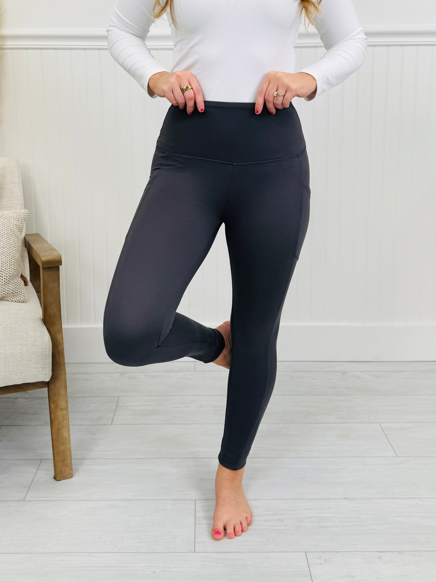 No matter where you're headed, get ready to feel that sculpted comfort from these leggings all day long! Extra soft and comfy, these leggings feature a wide waistband for a flattering and versatile fit and pockets for added convenience. Whether you're at the gym or running errands, stay stylish in these sporty and casual leggings. Style these with a comfy tank top and sneakers for the perfect on the go look, or change it up and wear them with a graphic tee!