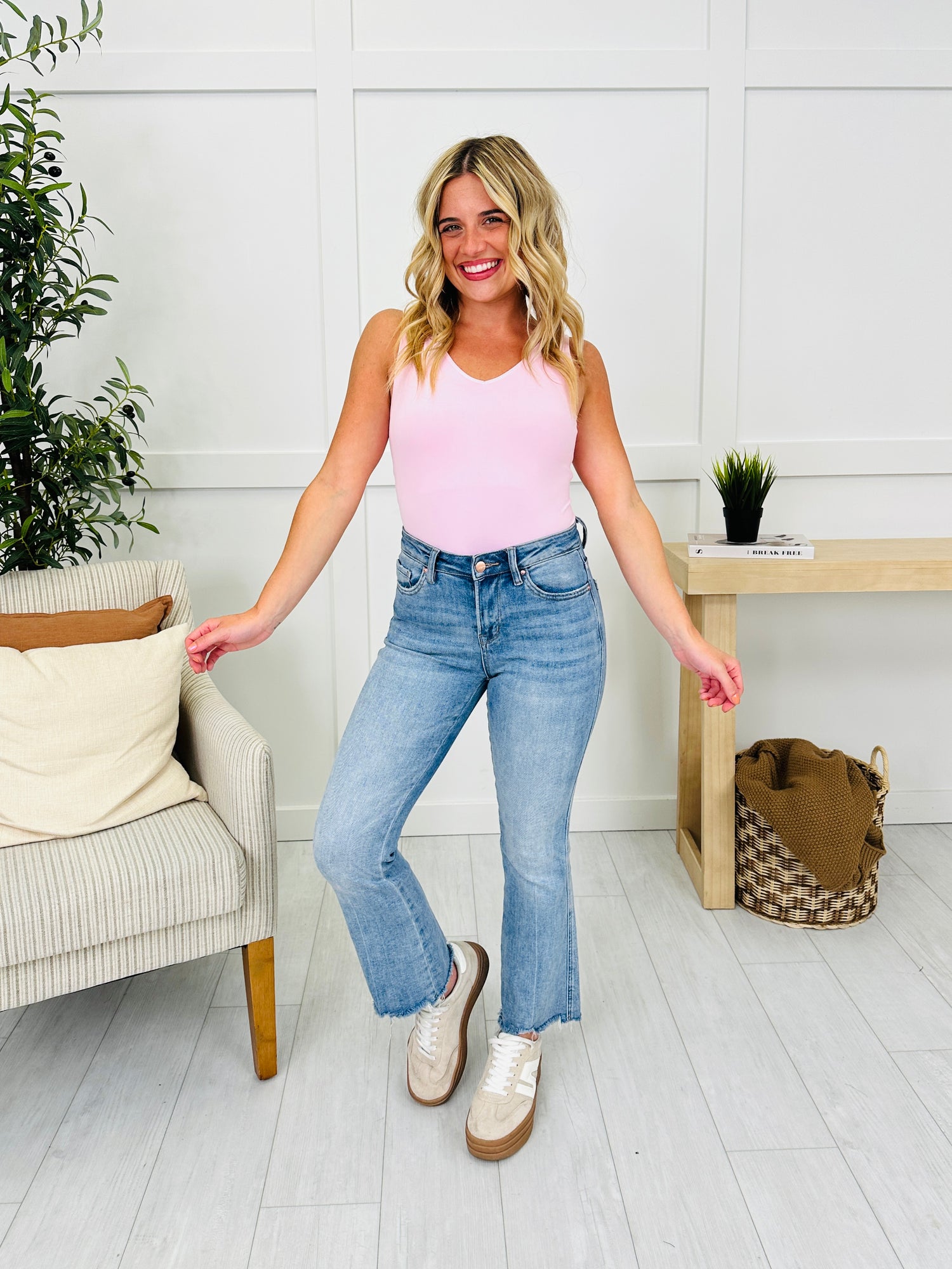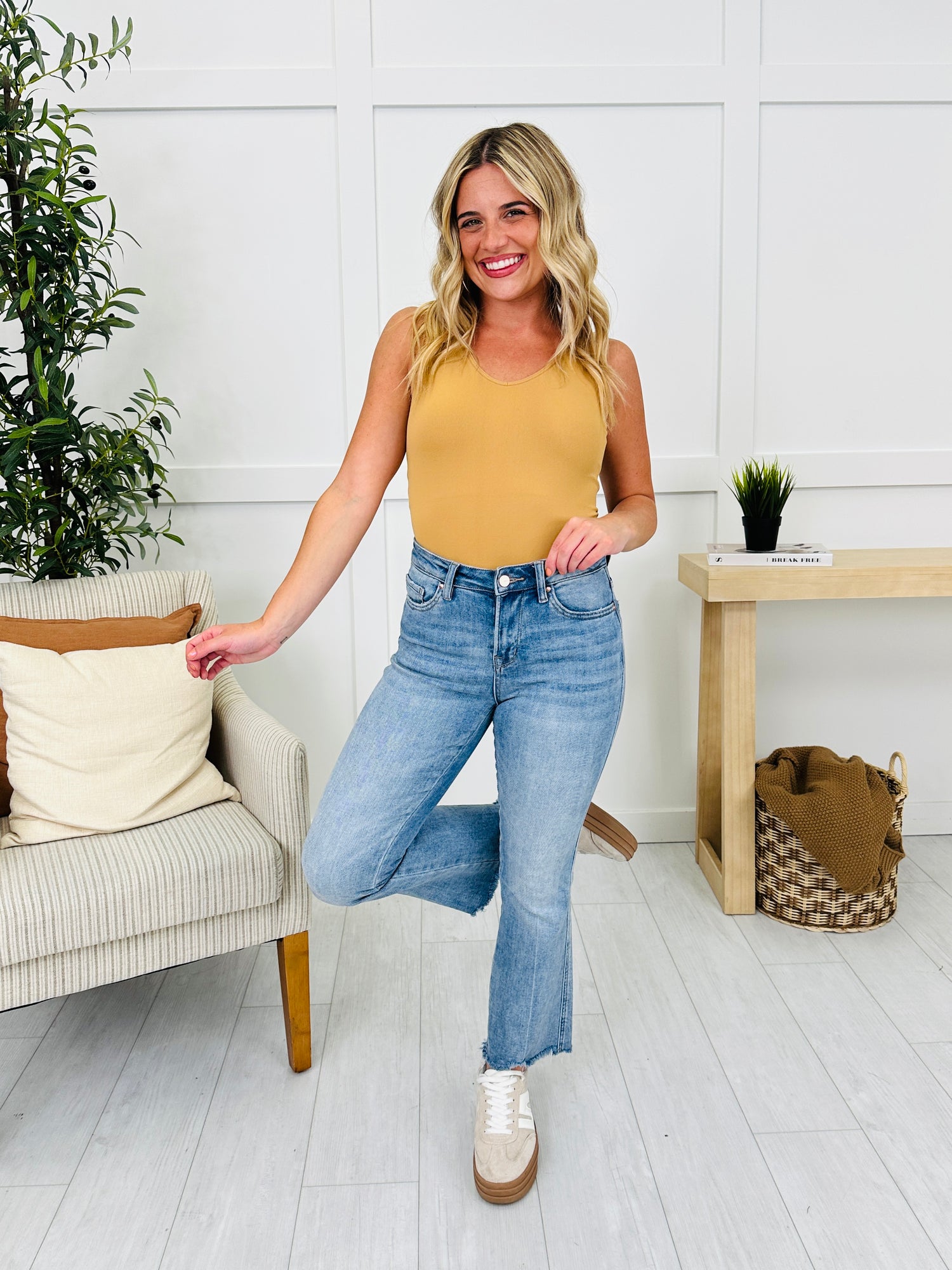 This shapewear tank sucks you in and smooths you out! It's a longer, fitted tank that stays put so you don't have to worry about it sliding up or down!
