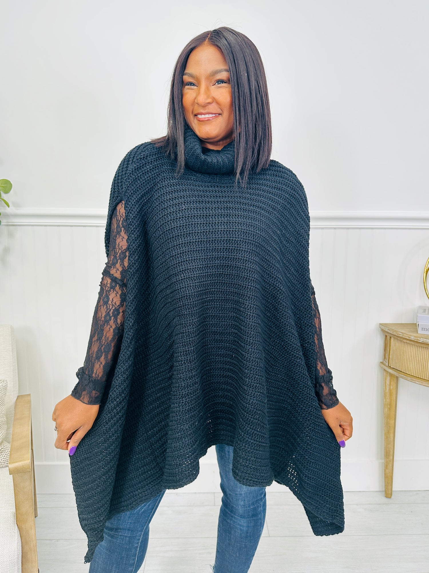 This chic poncho-style top pairs a cozy knit with a relaxed turtleneck, creating an effortless layer that feels both polished and comfortable. The flowy open sides make it easy to style over fitted long sleeves, letting your layers underneath peek through for added dimension and charm. Its soft, drapey silhouette offers an elevated look that can be worn across multiple seasons and colors.