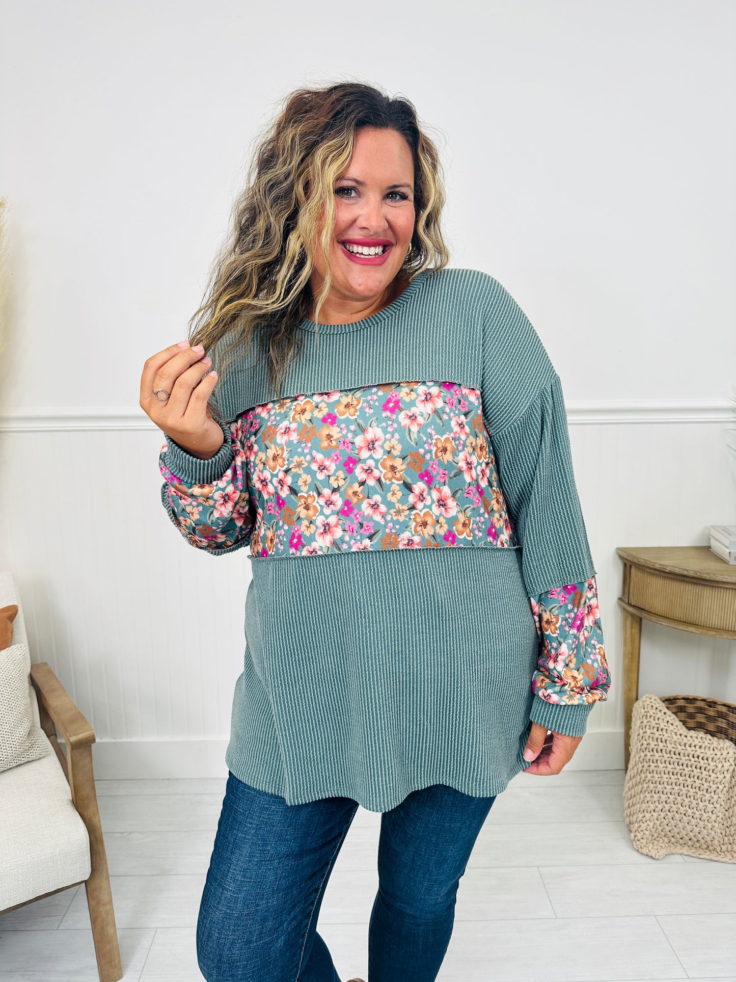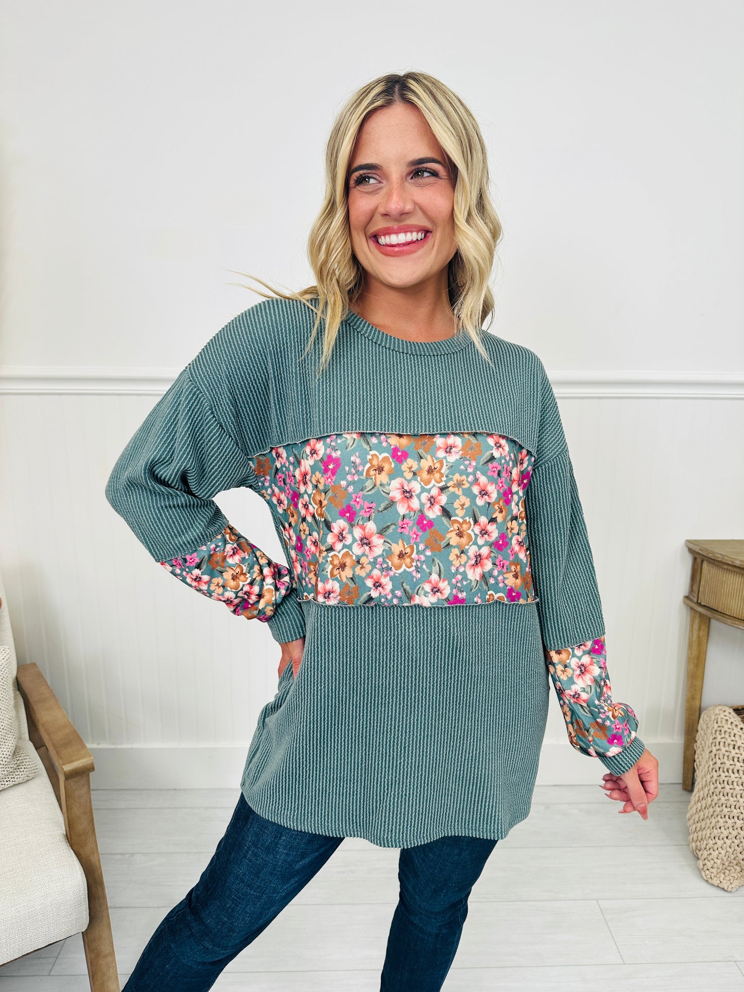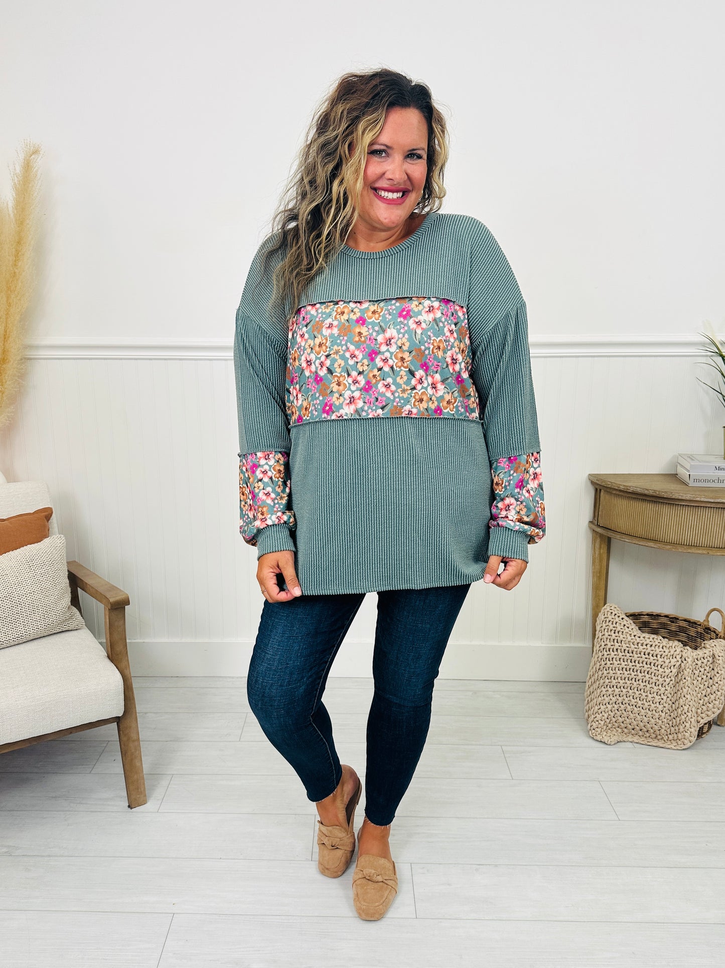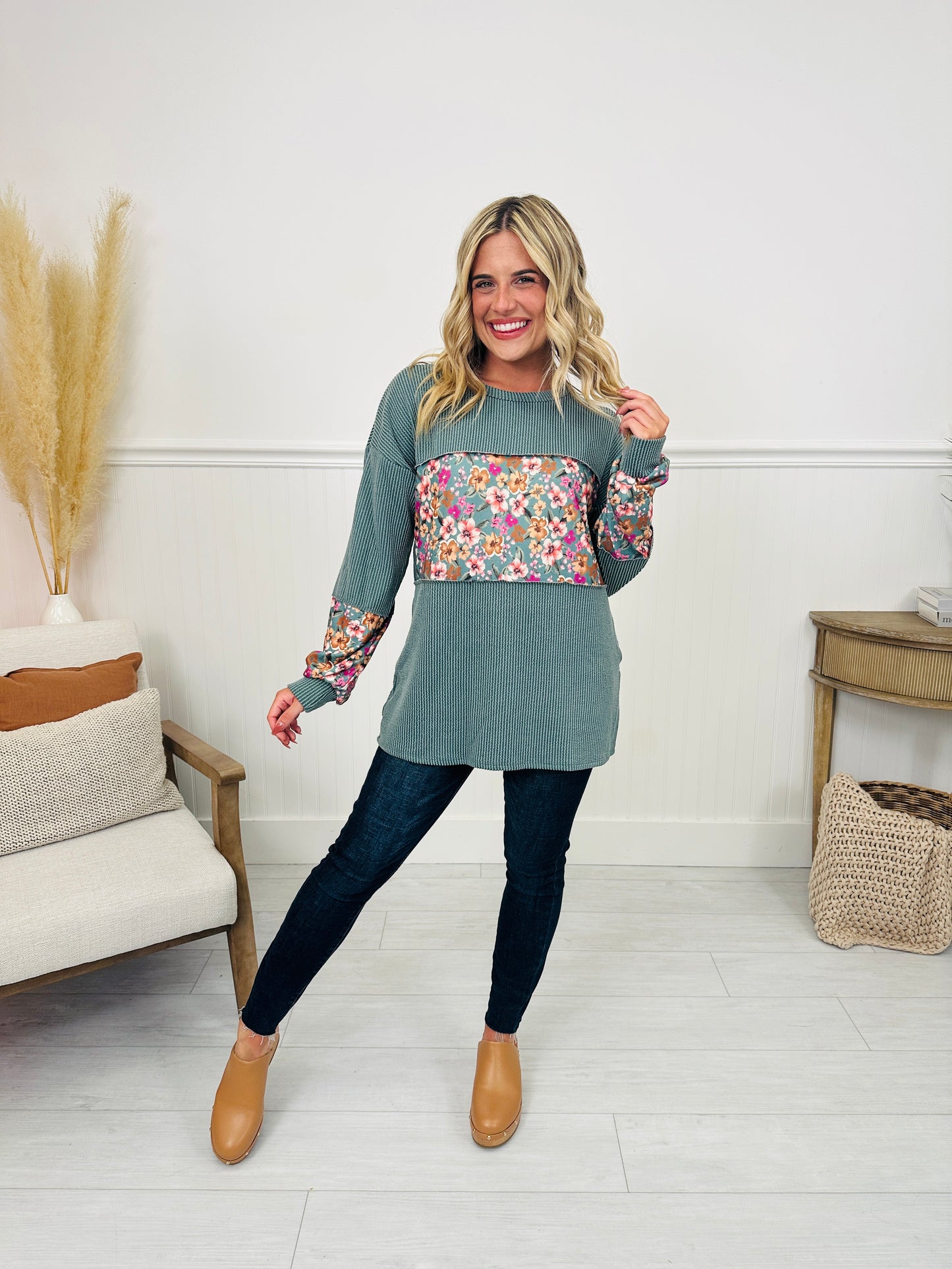 We are obsessing over this new fall arrival, made from our best selling raised ribbed fabric that our customers rave about. This top is buttery soft, oversized, and flattering on every single body type. We love the floral contrast for fall and we can't decide which of these gorgeous fall hues we love most. This is the perfect top to pair with both jeans and leggings. Styles in this best selling fabric never last long, so be sure to grab it while you still can!