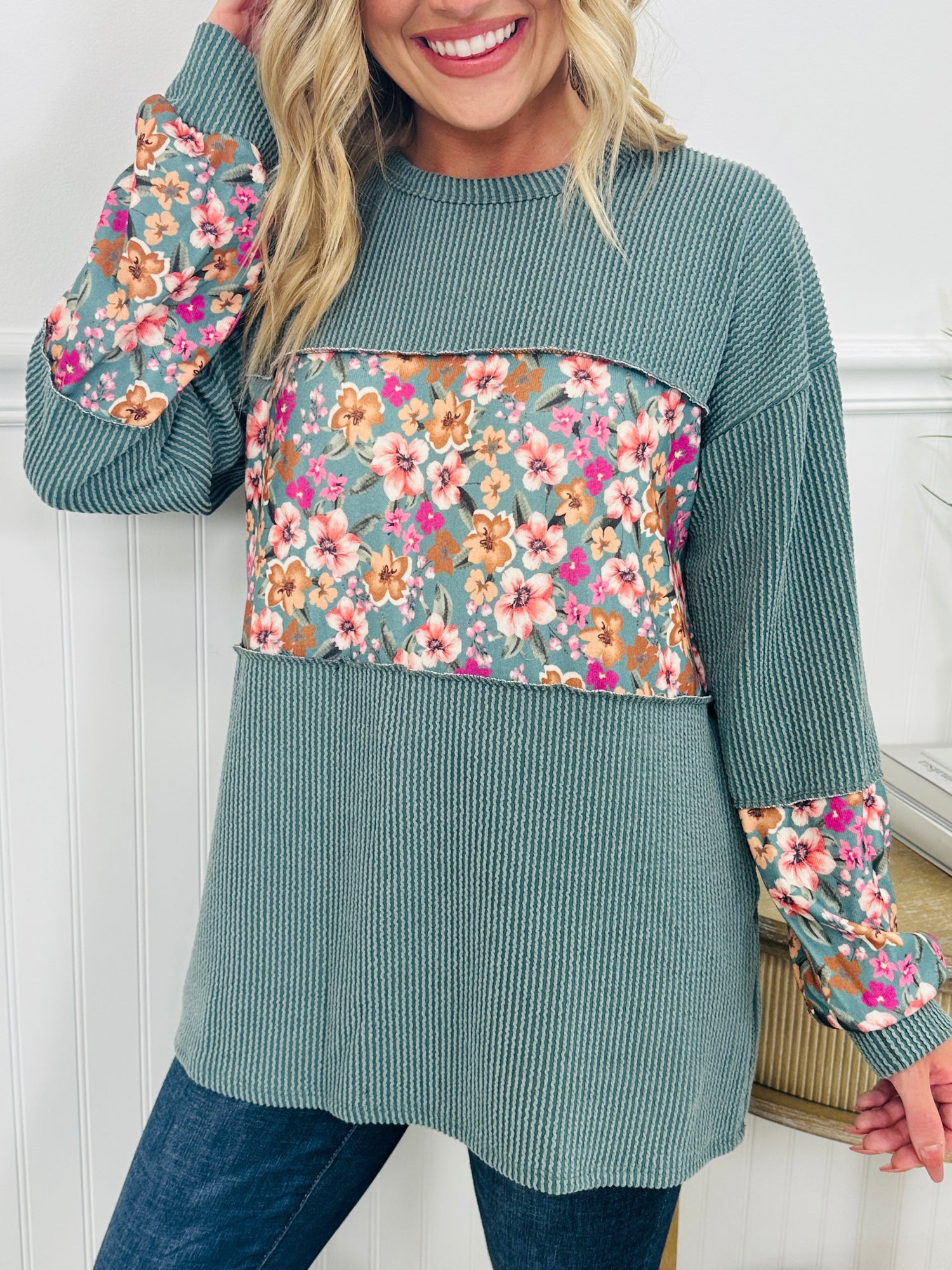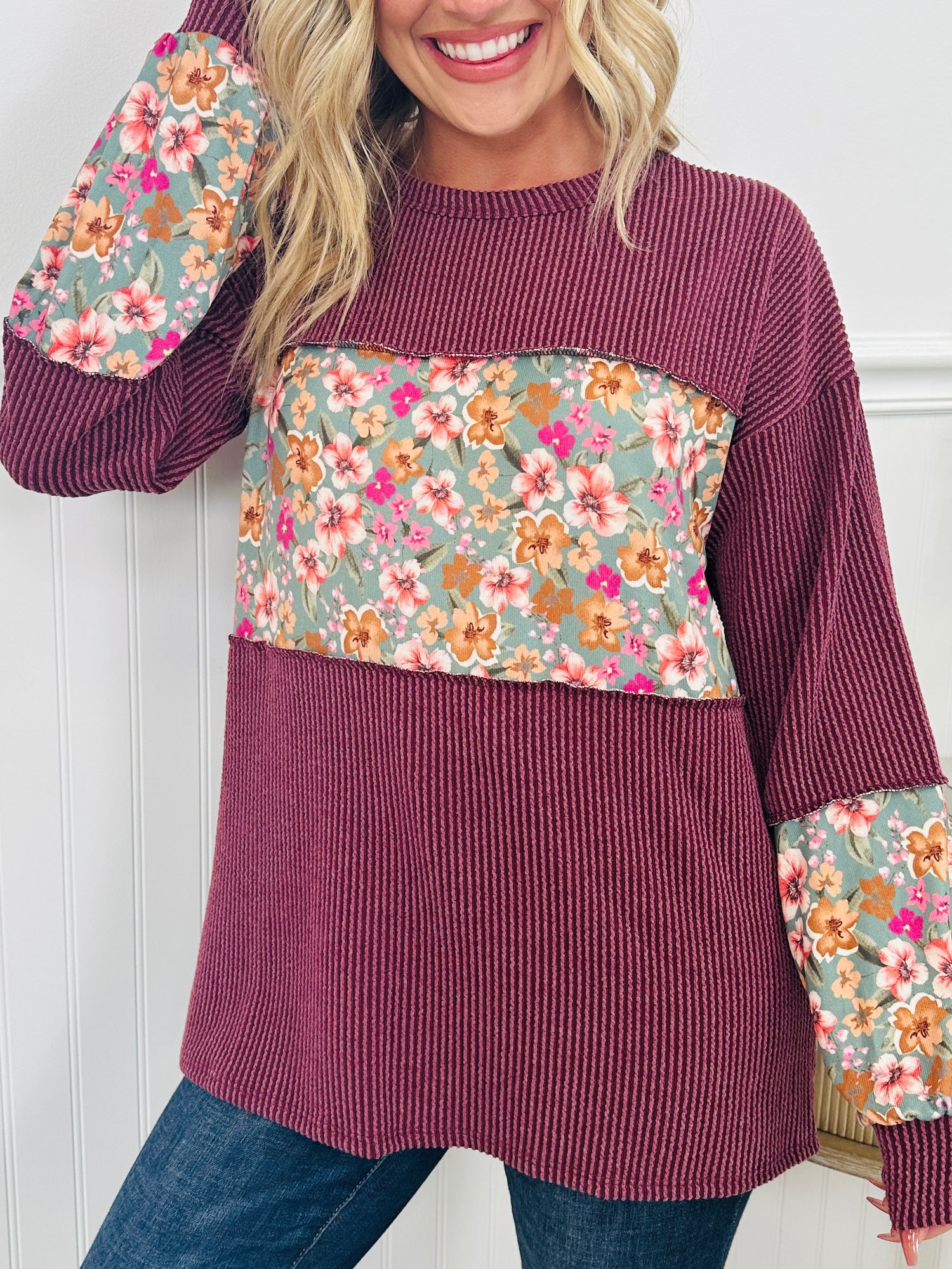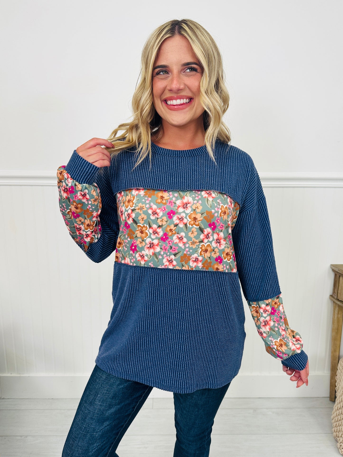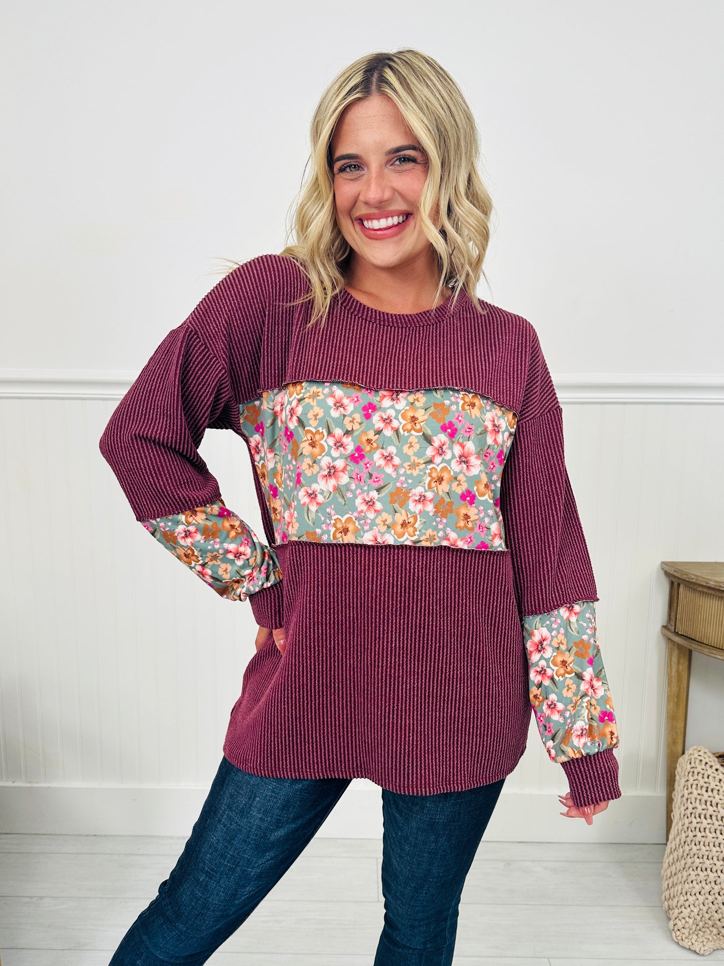 We are obsessing over this new fall arrival, made from our best selling raised ribbed fabric that our customers rave about. This top is buttery soft, oversized, and flattering on every single body type. We love the floral contrast for fall and we can't decide which of these gorgeous fall hues we love most. This is the perfect top to pair with both jeans and leggings. Styles in this best selling fabric never last long, so be sure to grab it while you still can!