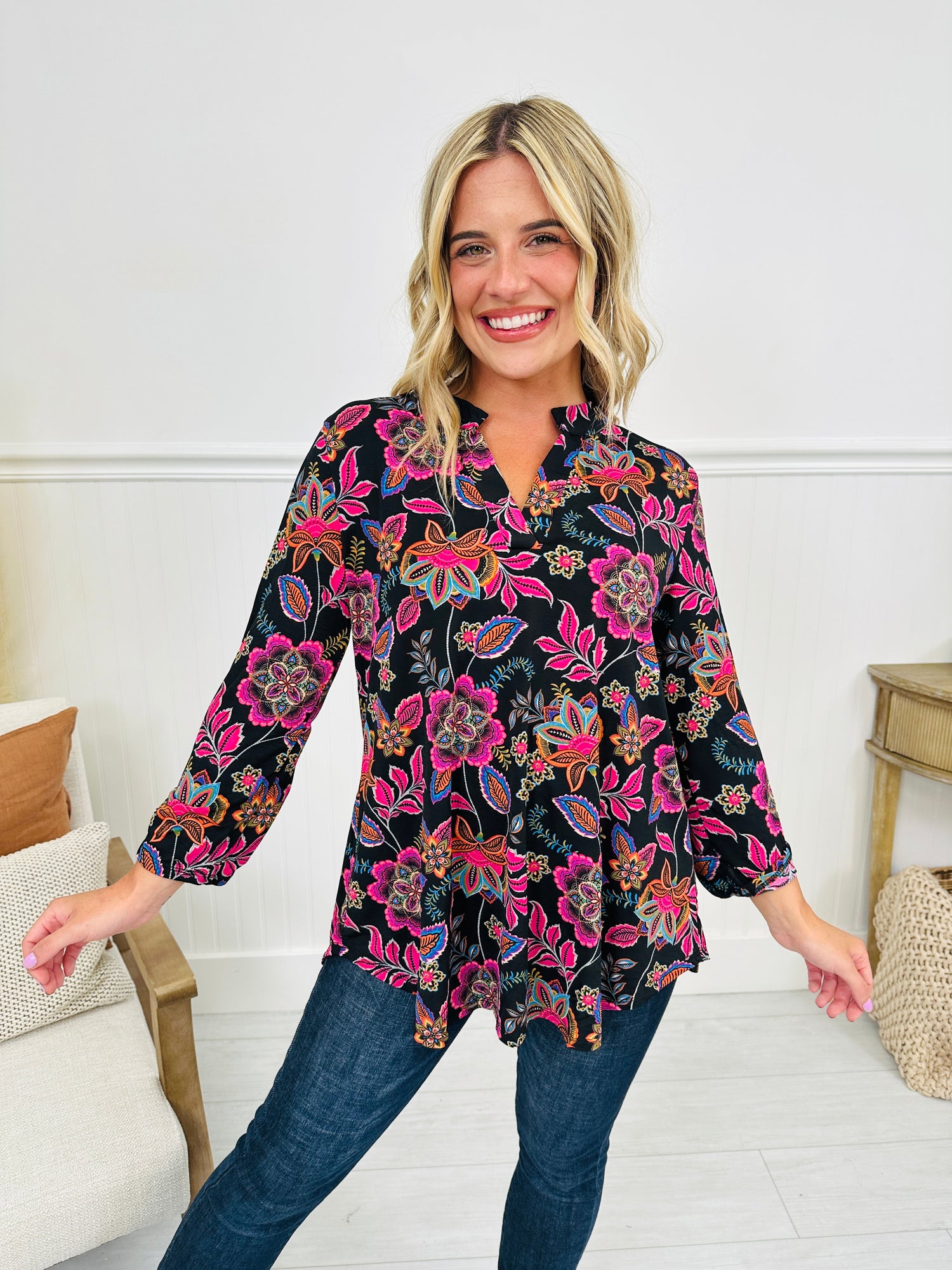 Our best selling top is now available in new fall prints that we can't get enough of. Our customers rave about the material of this wrinkle free top that is cool to the touch. This top is flowy and flattering on every single body type and because it's wrinkle free, it's perfect for traveling or being on the go. The length is perfect to pair with jeans, leggings, and work pants, making it a versatile piece in your wardrobe. This top is available in sizes S-3XL and at only $38, you should probably get multiple prints. ;)