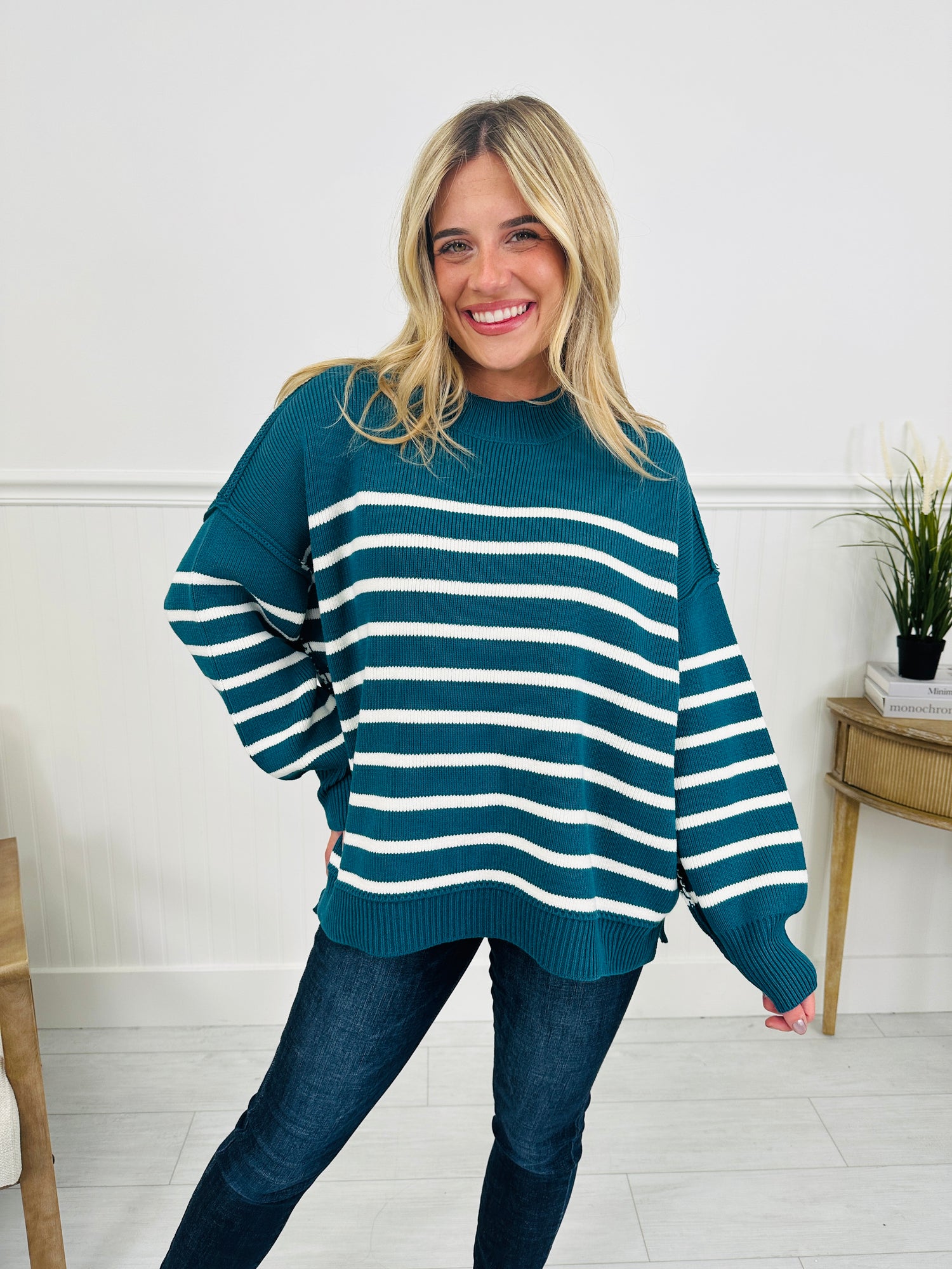 This new arrival will have you falling for stripes this season. This new sweater is what cozy dreams are made of-- it's buttery soft, stretchy, and so comfortable. Stripes are trending this season and with it's relaxed fit, this sweater is flattering on every body type.