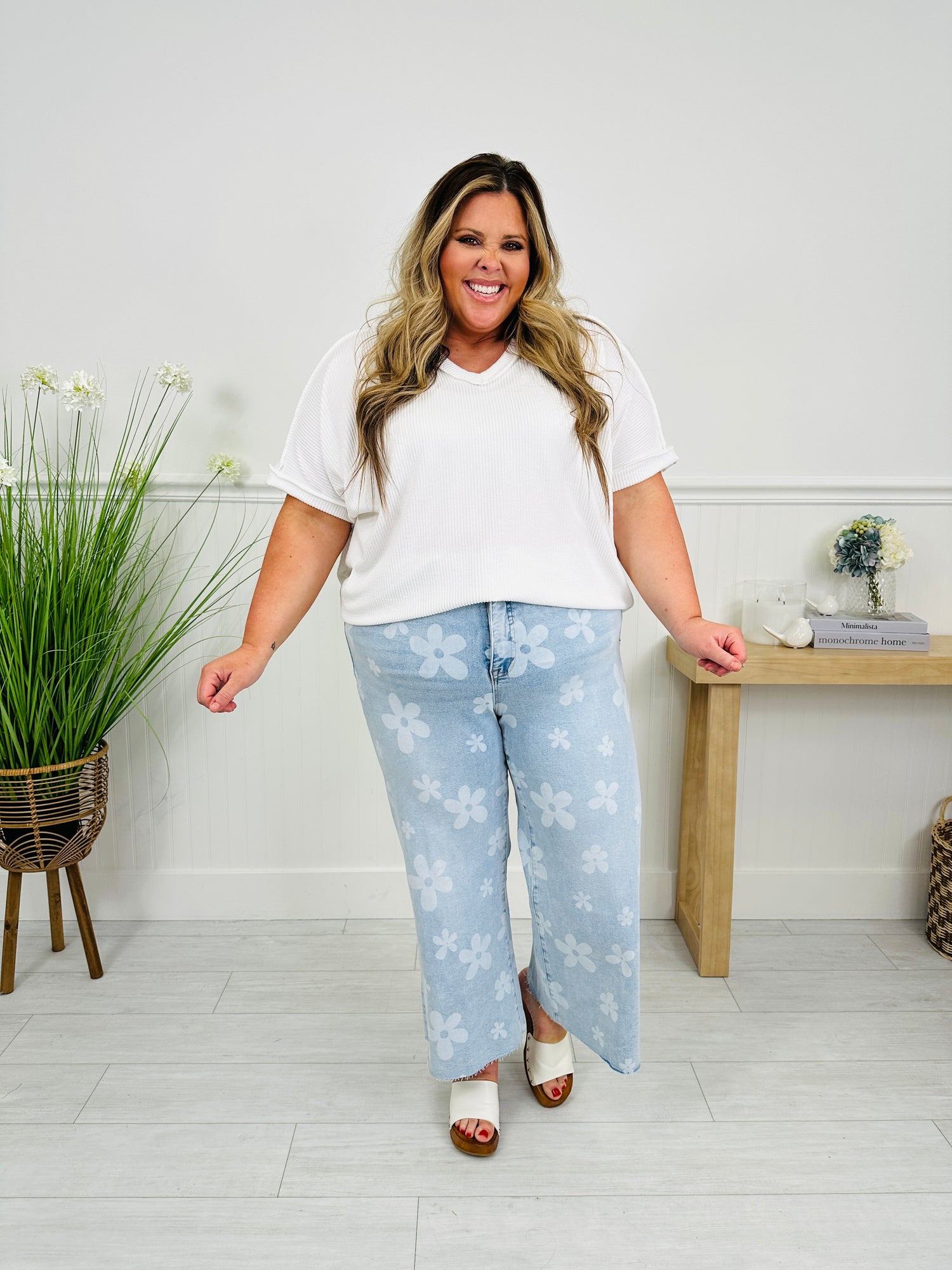 These jeans are buttery soft, stretchy, and so comfortable. They move with you and hold their shape all day long. The raw hem gives them an extra pop of trend and the ability to work for every inseam! If you get them in and they are too long, simply snip them to achieve your perfect inseam. Dress them up with a spring sweater or blouse and wedges or down with a graphic tee and sandals for multiple, versatile looks with a pop of floral trend.