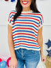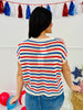 Add a burst of charm to your look with this easygoing striped top, perfect for festive and patriotic days or casual vibes. The thicker cuffs add a soft touch of detail while the vibrant red and blue stripes pop against the neutral background. Whether you dress it up or down, this versatile piece is ready to pair with all your fave denim and sandals.