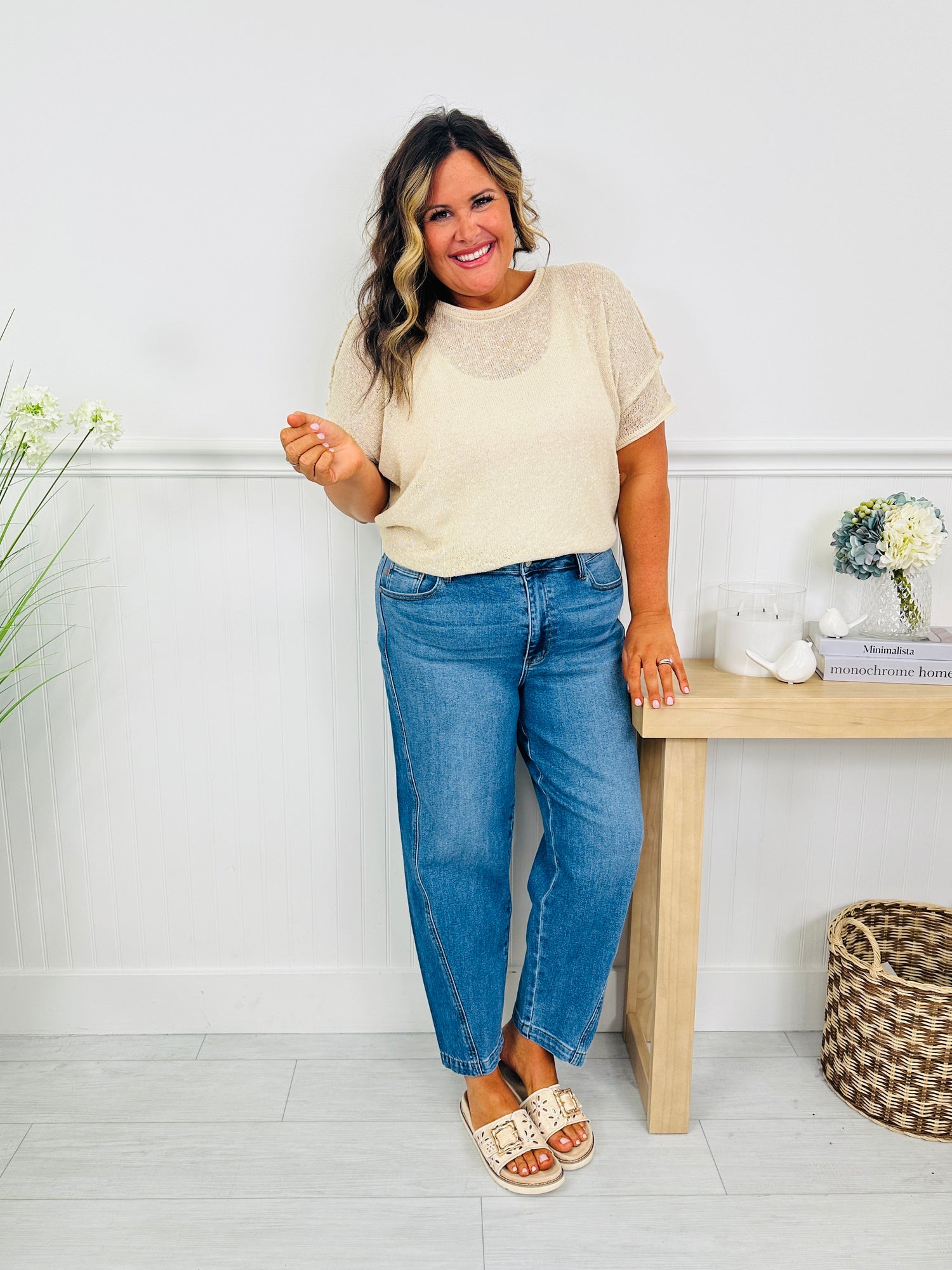 The trendy side panel adds a modern edge while enhancing the curved barrel silhouette, giving these jeans that effortlessly cool shape everyone’s loving right now. Soft, comfortable, and easy to wear, they pair perfectly with fitted tanks, lightweight knits, or casual tees as you transition into the new season. These are the kind of jeans that feel fresh, current, and confidently wearable on repeat.