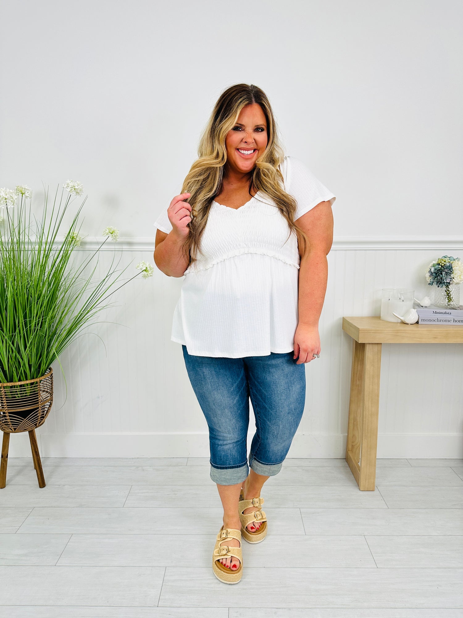 These jeans are buttery soft, stretchy, and so comfortable. They feature an adjustable cuff that makes them the perfect inseam for women of all heights. These are guaranteed to give your spring wardrobe a glow up. Add these best selling capris to your cart before they sell out... again!