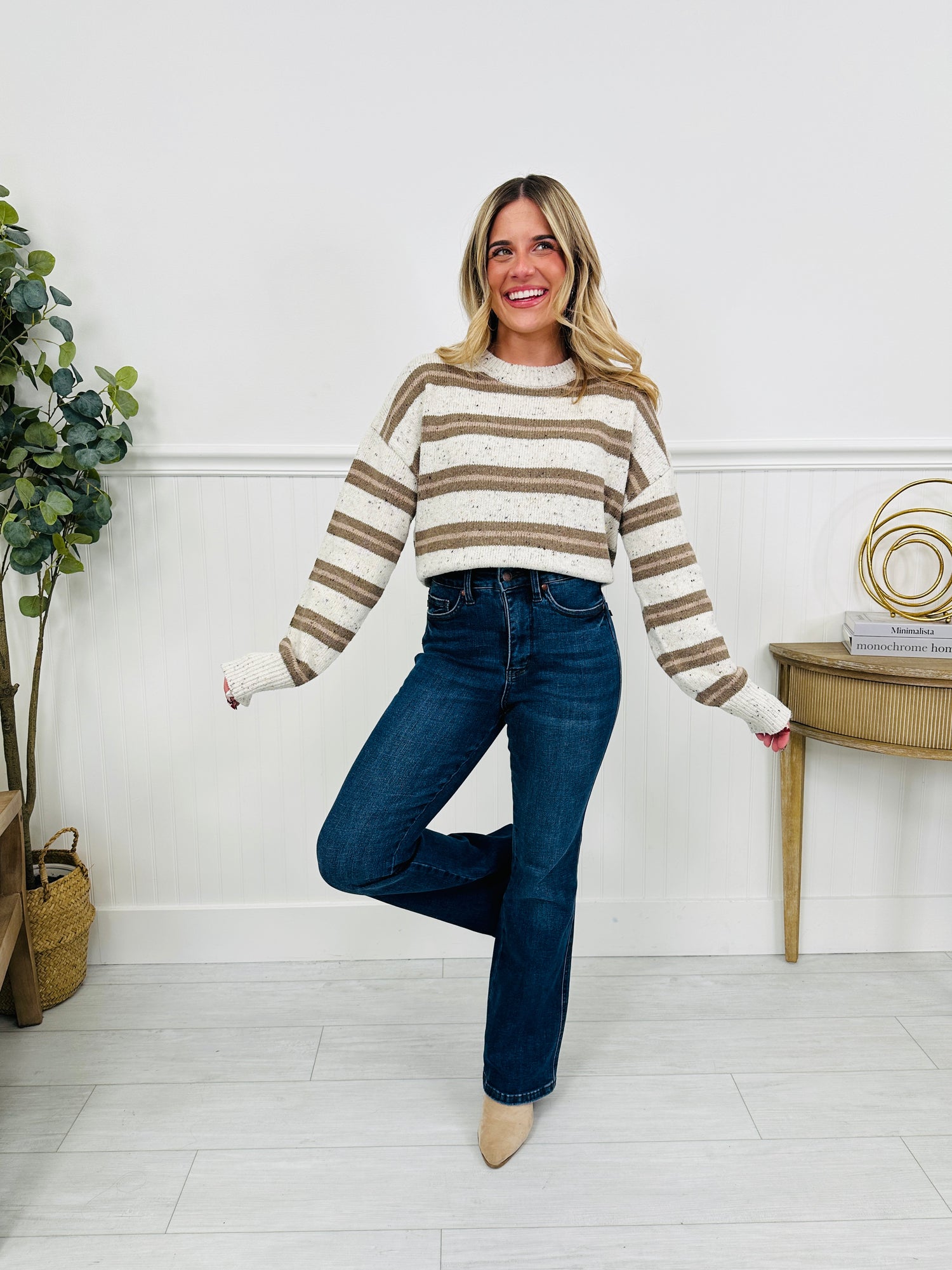 These soft and stretchy jeans will be your go-to jeans this season. They are so comfortable. We love the dark and dreamy wash and with zero distressing, you can wear these jeans everywhere. Dress them up with booties or down with sneakers or moccasins for multiple, versatile looks this season.
