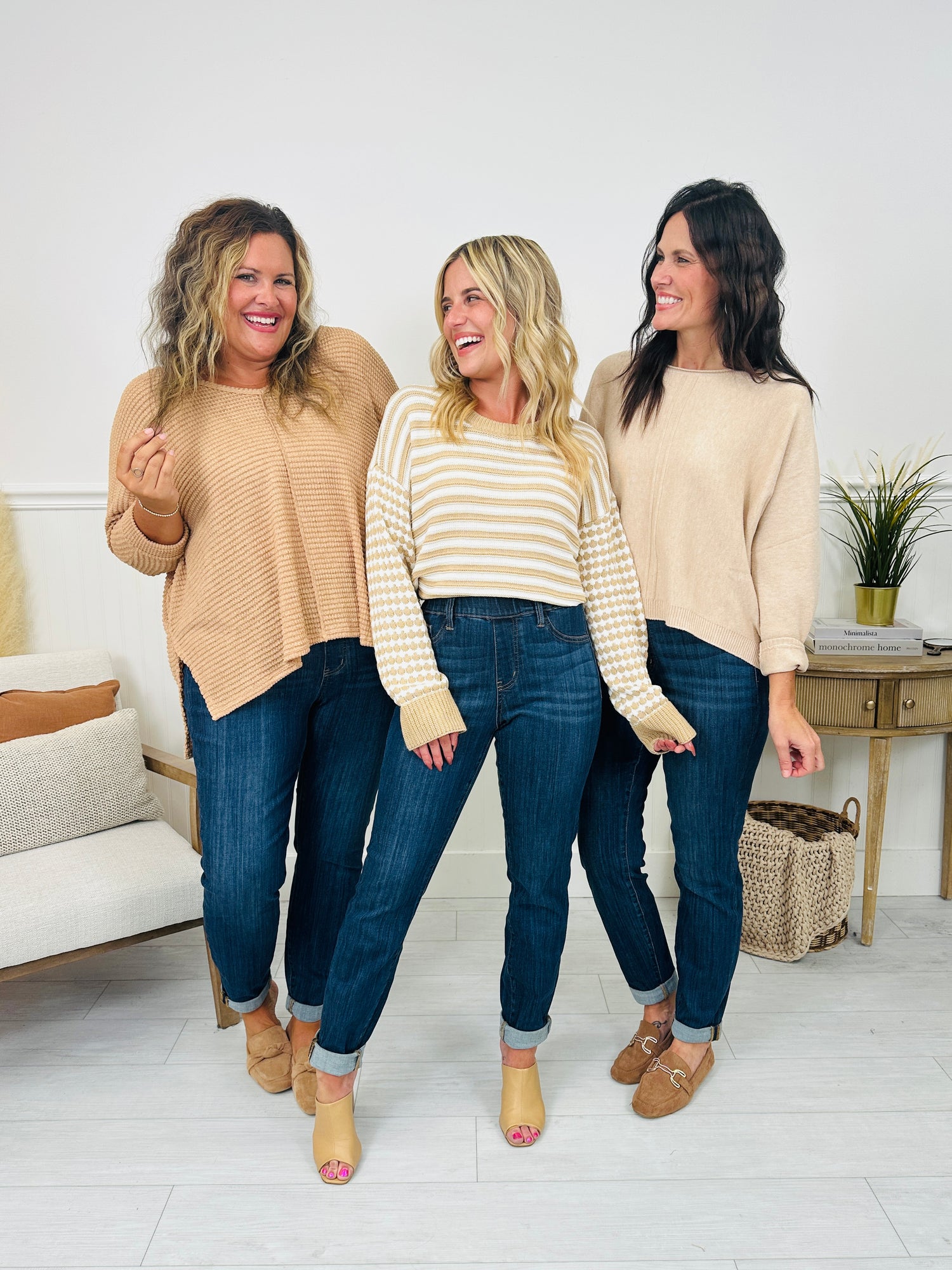 Meet your new favorite jeans from Judy Blue! These pull on slim fit jeans are so incredibly comfortable; you will never want to take them off! The elastic waist band separates these jeans from every other jean on the market--they are so comfortable! The dark and dreamy wash is flattering and with zero holes or distressing, these jeans can be worn from work to weekend to everywhere in between.