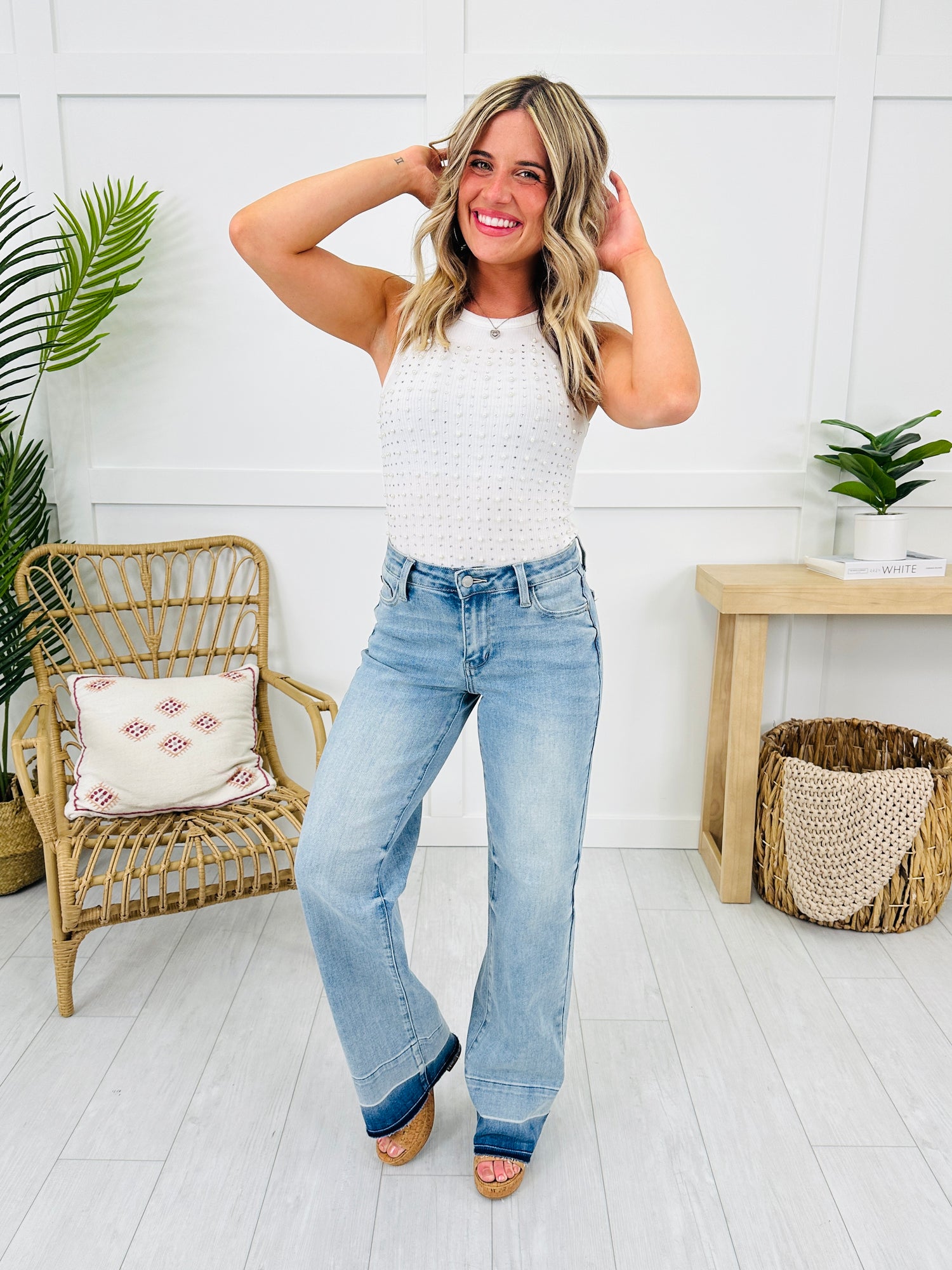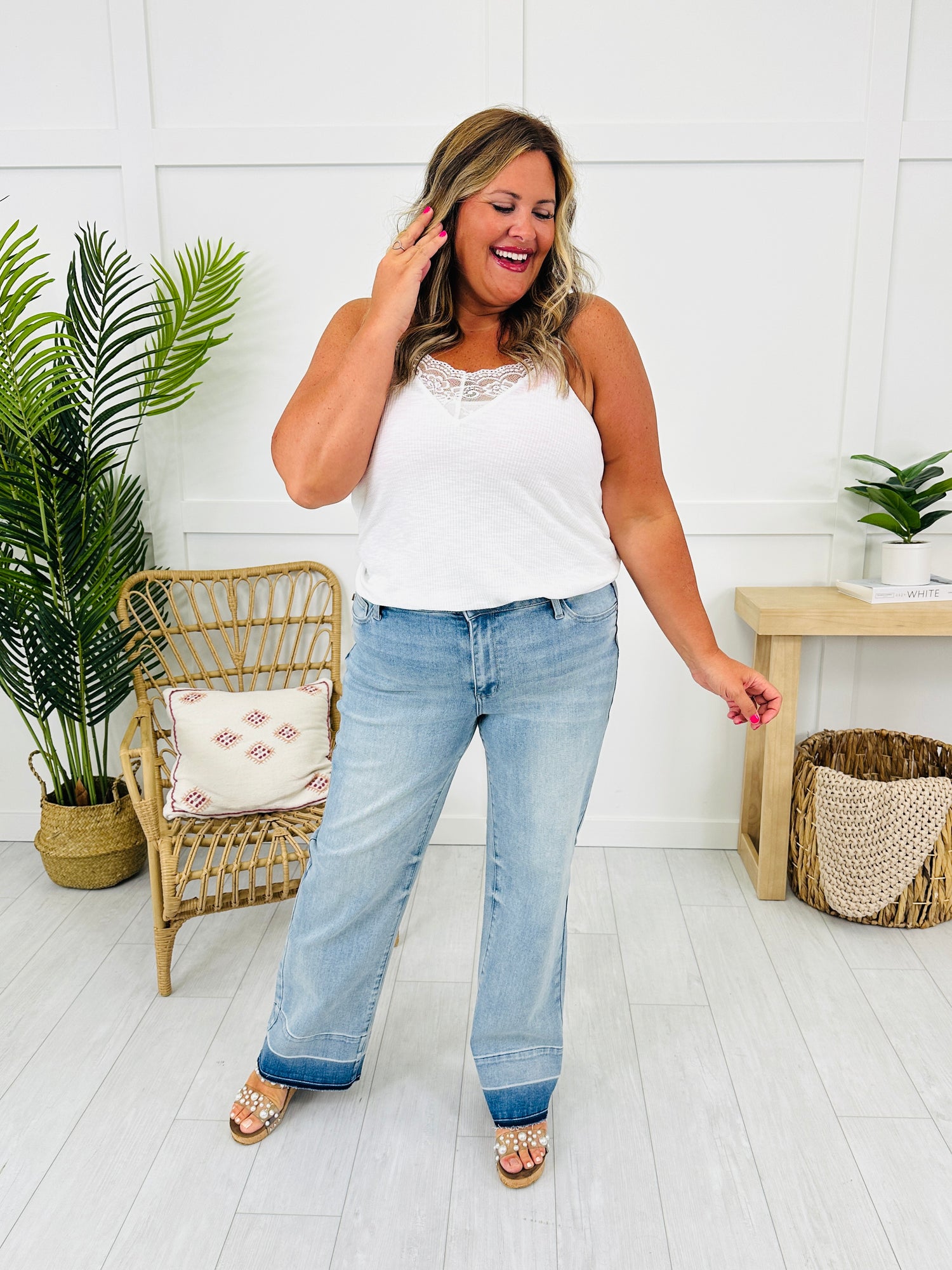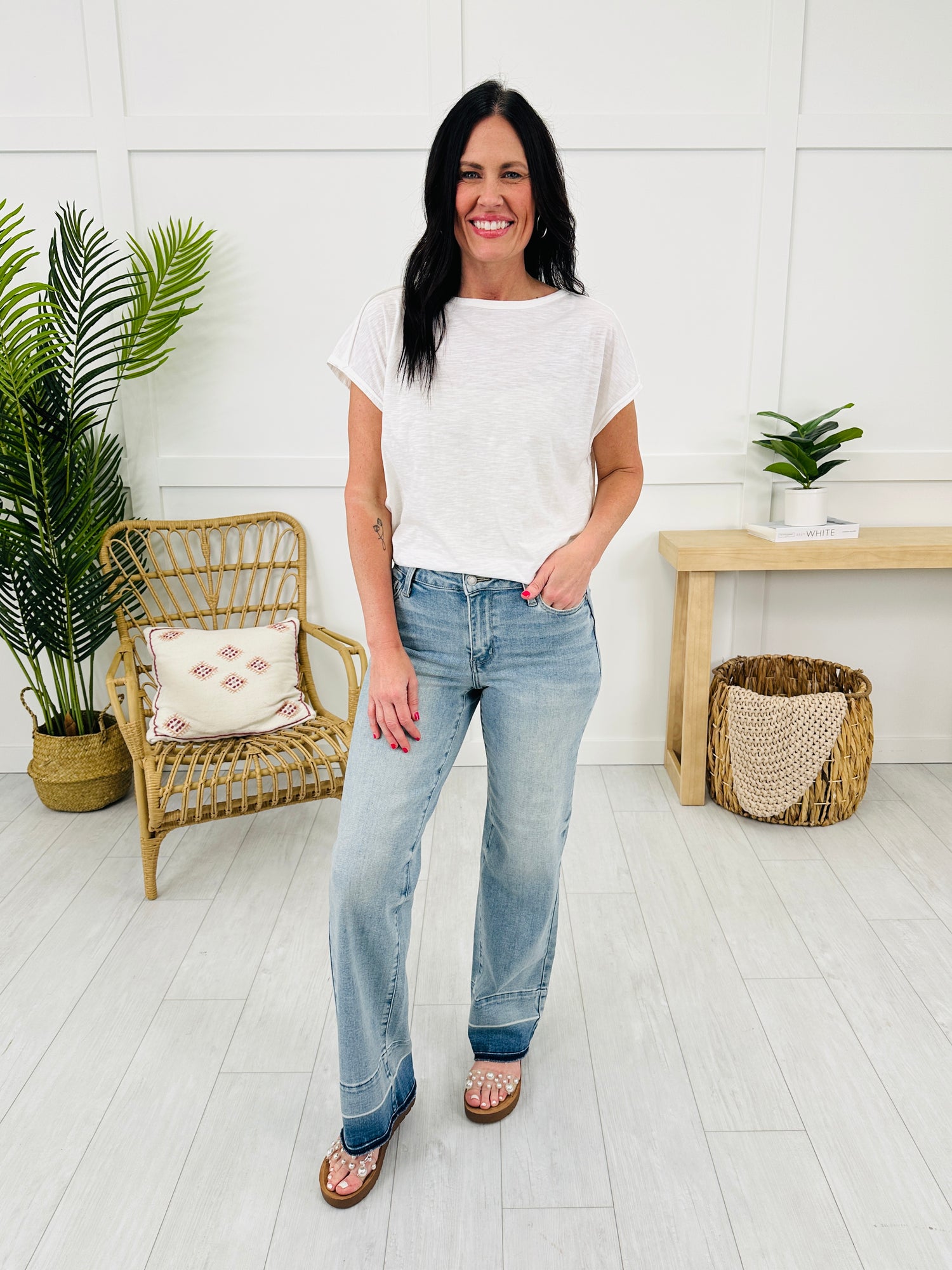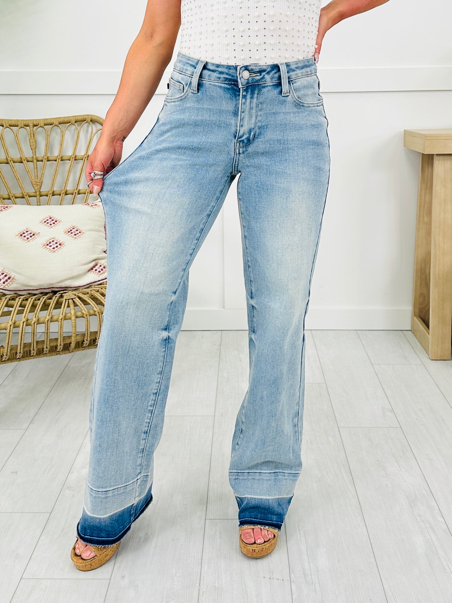 Release your inhibitions and get on trend by adding these new Judy Blue wide leg jeans to your cart! These are the perfect summer jeans, featuring zero distressing which means they can be worn everywhere! These wide leg jeans are buttery soft and feature amazing stretch and snap back, which means they don't sag as the day goes on! The release hem detail is trendy and will elevate every basic outfit. These jeans are flattering on every body type. Grab these trending jeans while you can!