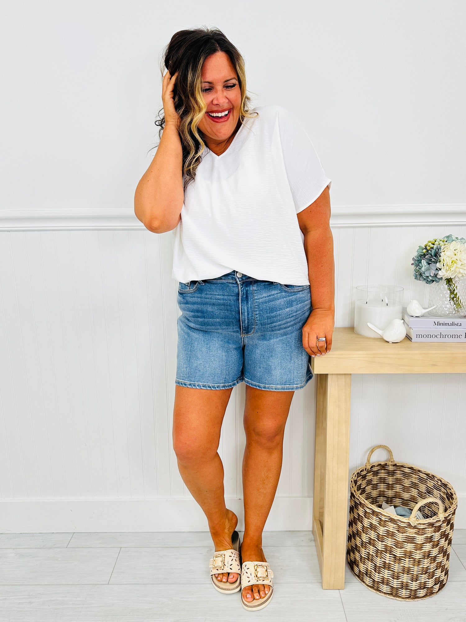 The high rise holds you in in all the right places without sacrificing stretch or comfort. The soft, stretchy denim moves with you and holds it's shape, making them ideal for everything from casual errands to sunny weekend plans. Effortless, comfortable, and endlessly wearable, these are the shorts you’ll reach for whenever sunshine is on the forecast.