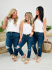 Walk this way and add these new Judy Blue Jeans straight to your cart! We love everything about these new jeans for fall and we know you will, too! This slim fit straight jean is so flattering on every single body type. The jeans are so soft and so stretchy! They snap right back into place and do not sag as the day goes on.
