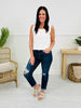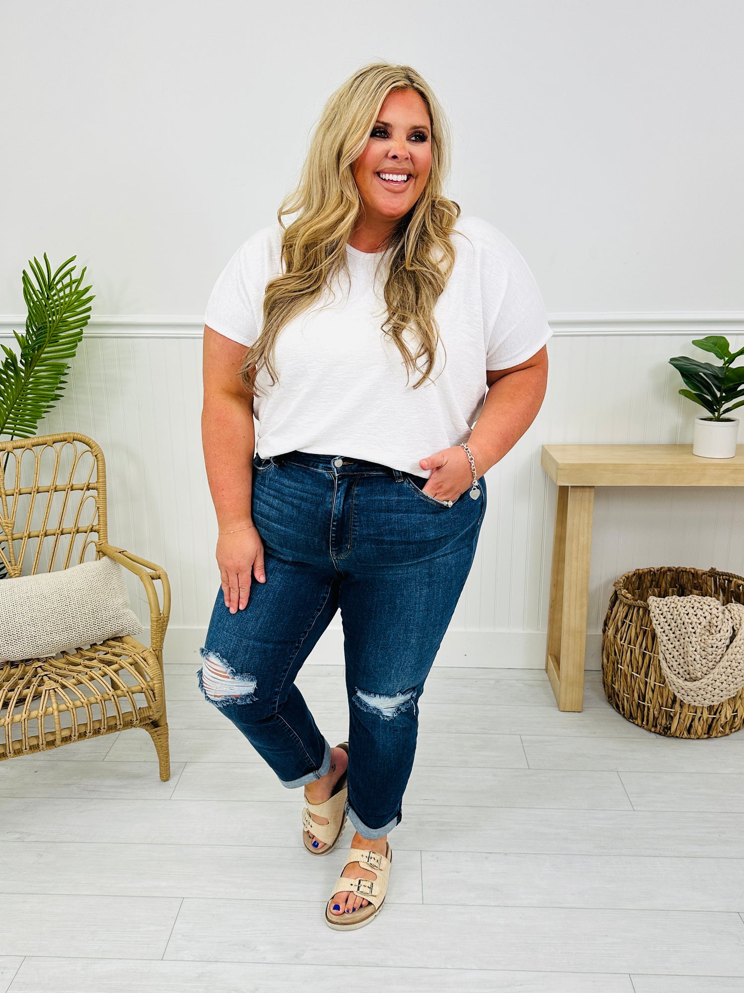 We love the dark and dreamy wash that is slimming and trendy for the colder seasons. The cuff can be uncuffed for extra length if desired. You can dress these down with your favorite sandals or sneakers or dress them up with wedges for multiple, versatile looks.