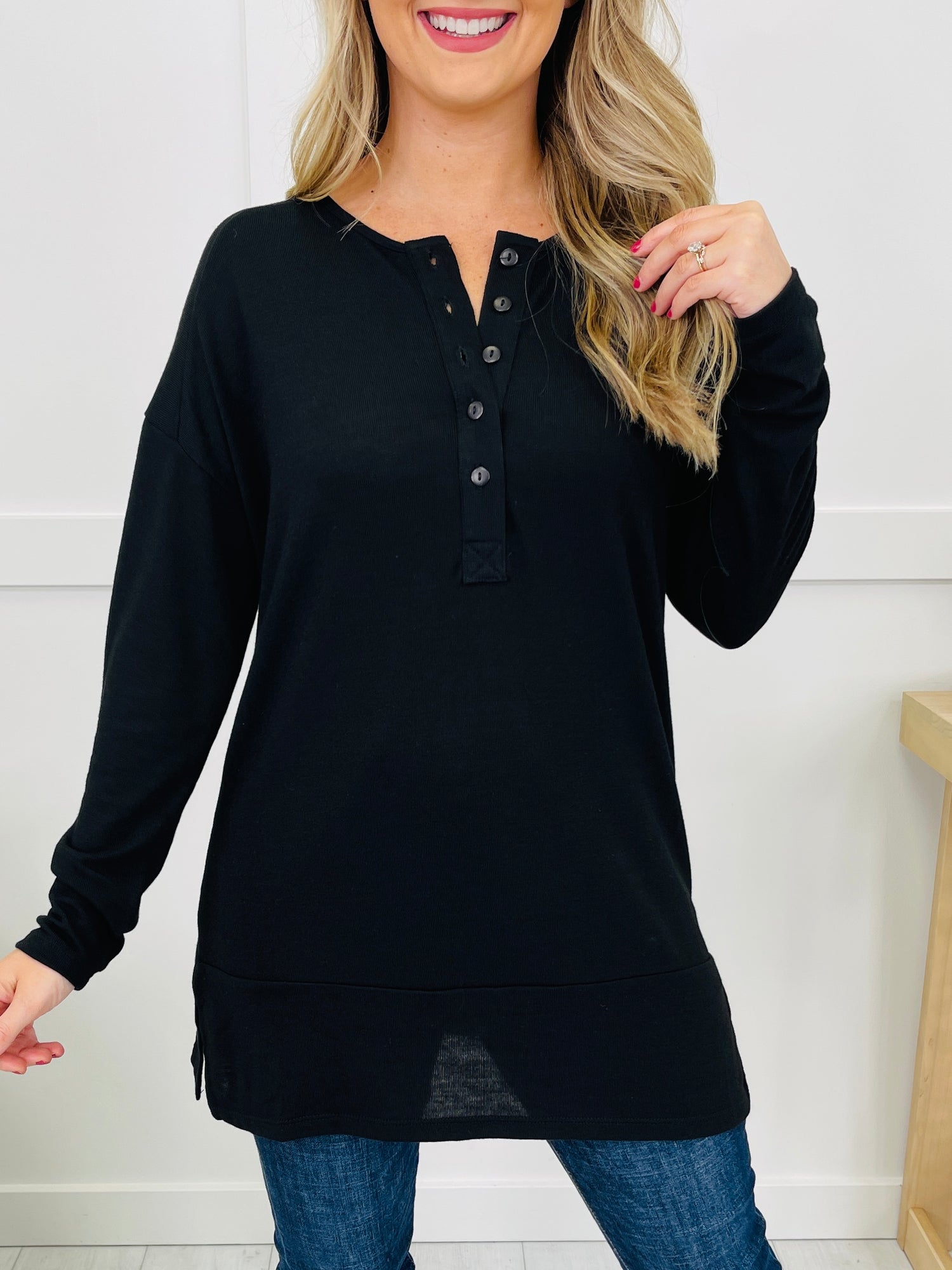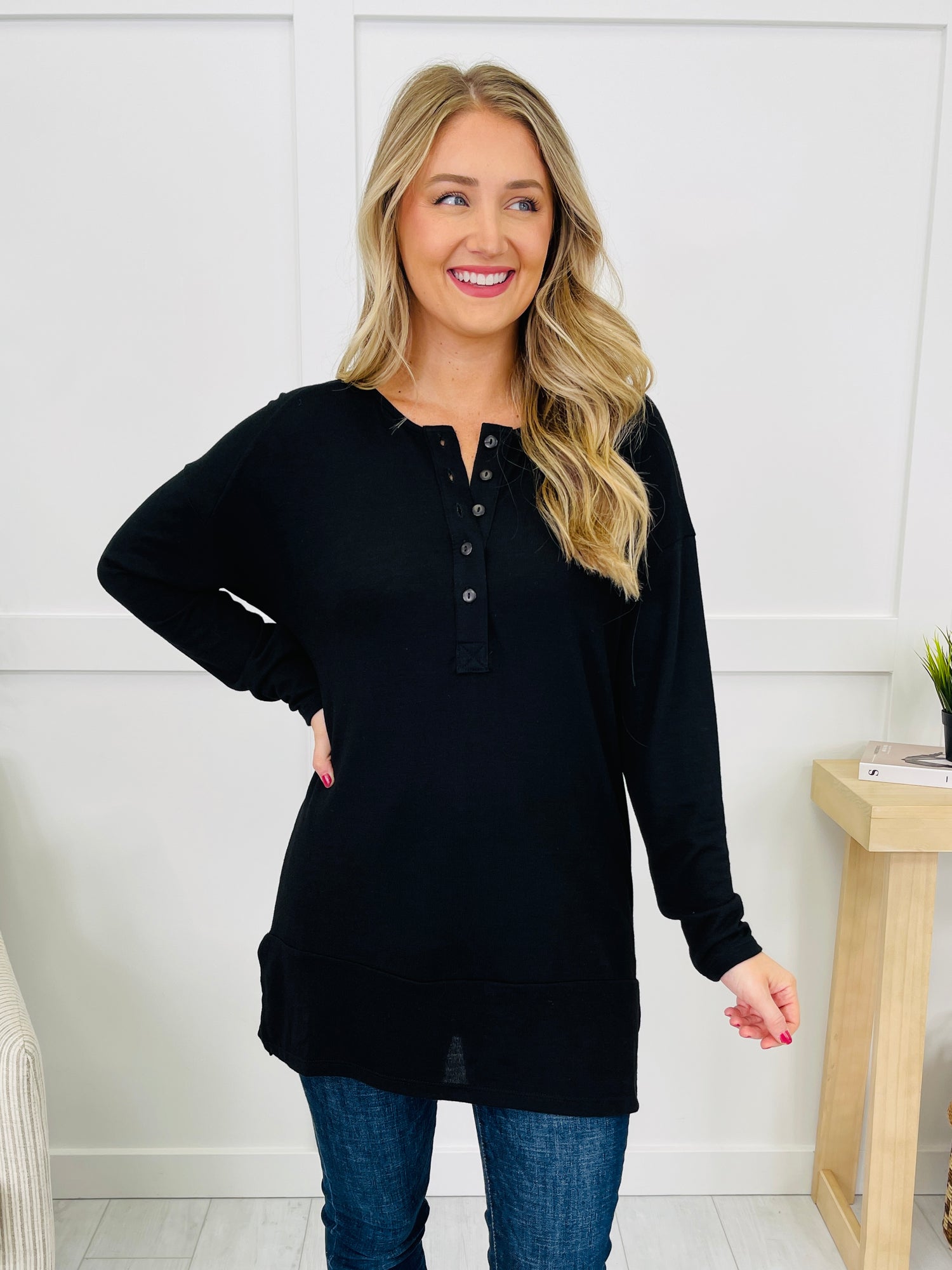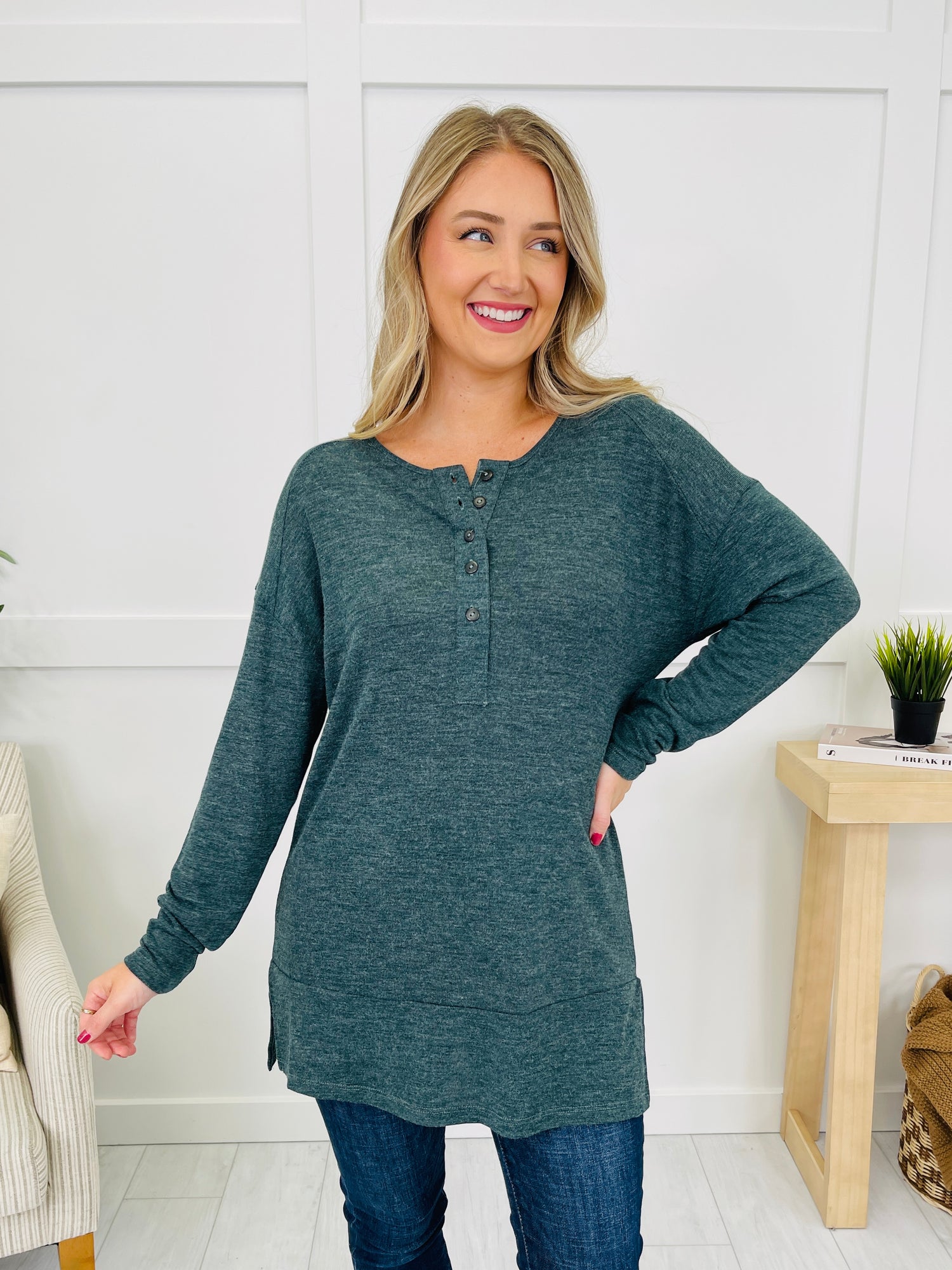 This cozy top features a soft, breathable fabric and functional button details, offering a relaxed fit perfect for layering or wearing on its own. The stylish and comfortable design makes it an ideal choice for those laid-back days, and its versatile color options allow you to mix and match effortlessly with your wardrobe. Ideal for pairing with jeans or leggings, this top is a must-have for casual outings!