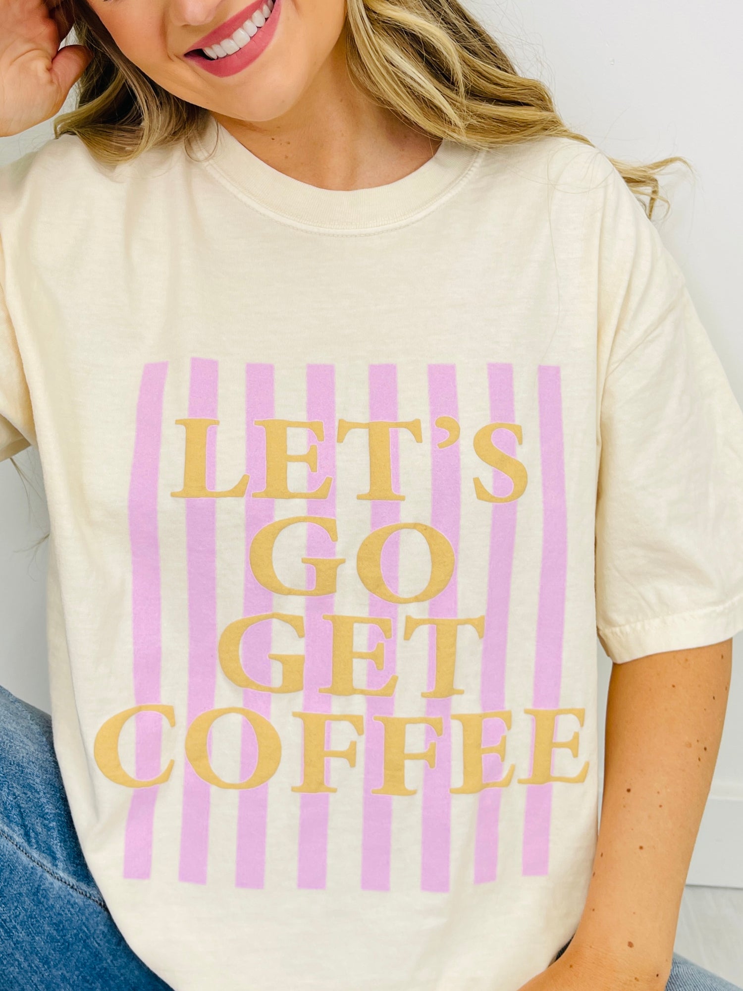 Attention Coffee Lovers--meet your new everyday favorite—the Let’s Go Get Coffee graphic tee. Designed with a relaxed, easy fit and soft feel, this tee is made for casual mornings, coffee runs, and laid-back days that call for comfort with a little personality.