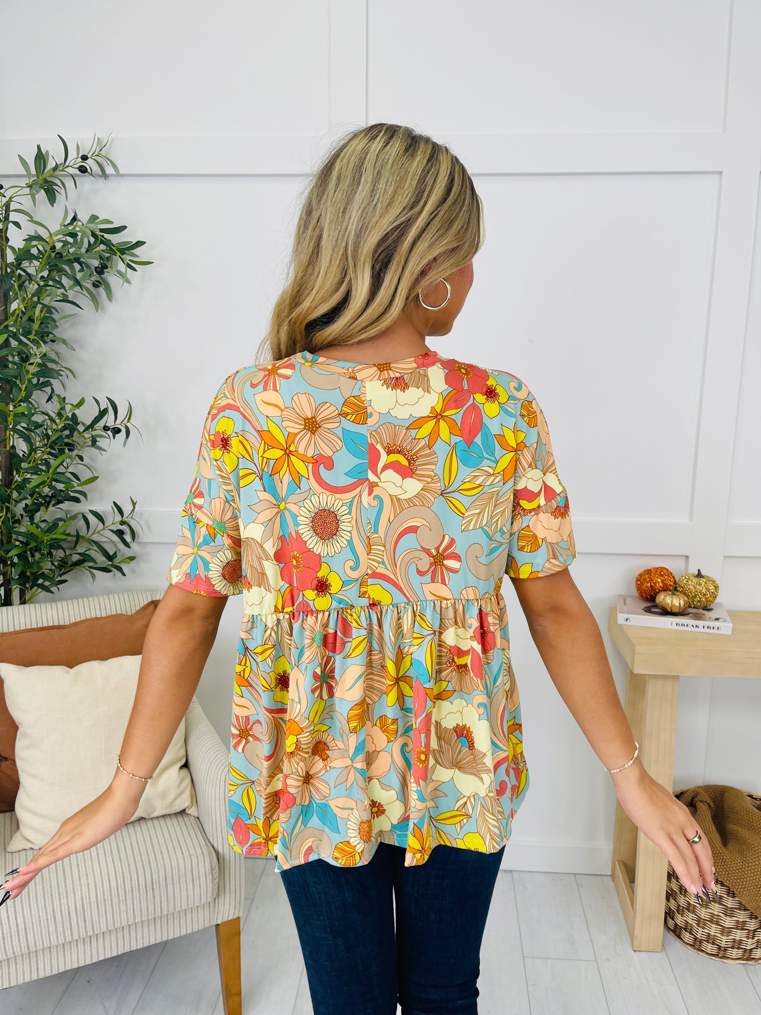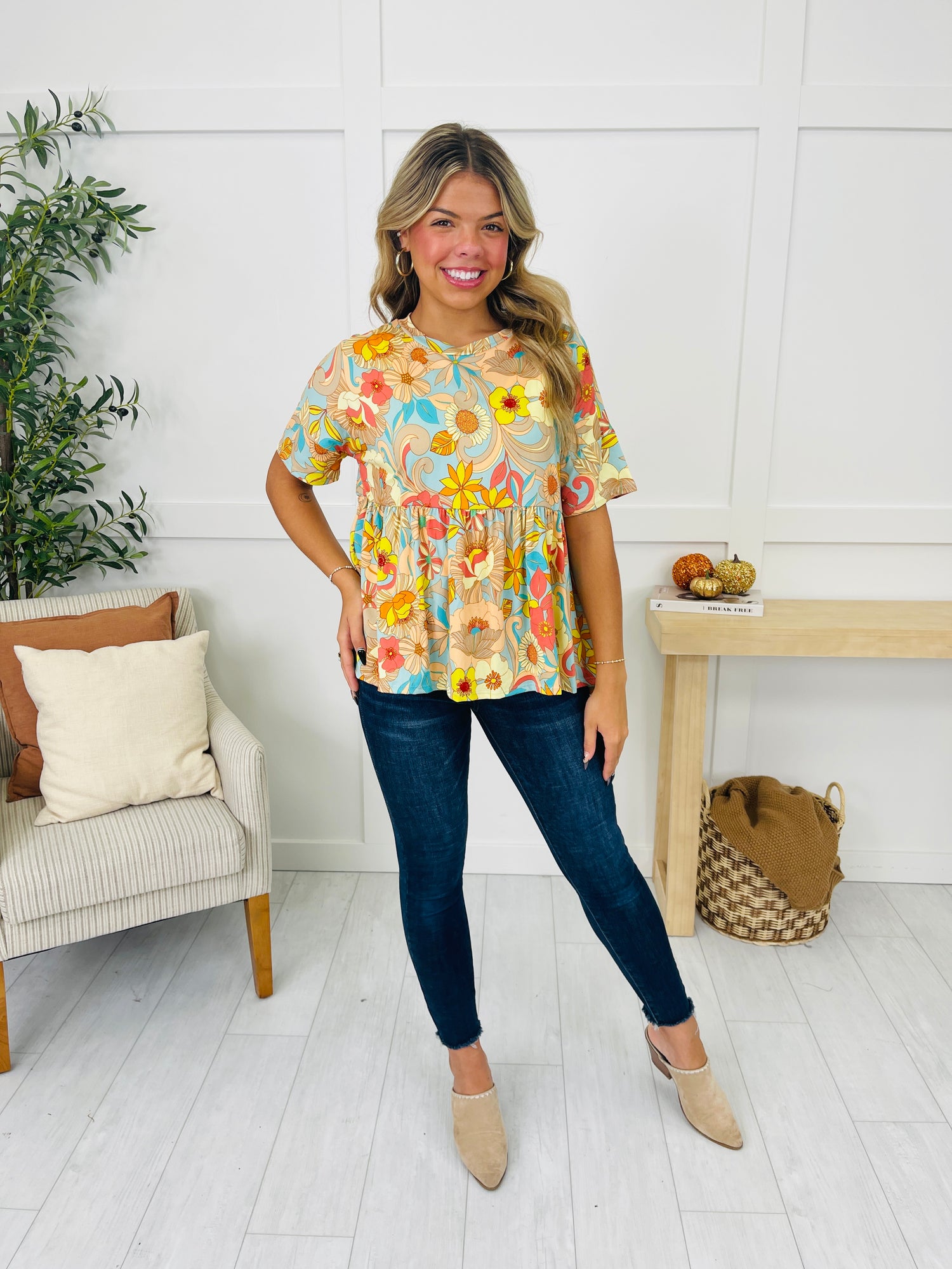 Crafted from an incredibly soft and stretchy fabric, this top features a stunning colorful pattern and a flattering tiered silhouette to complete your look. With a drop shoulder and flowy silhouette, you can wear this top for any occasion!