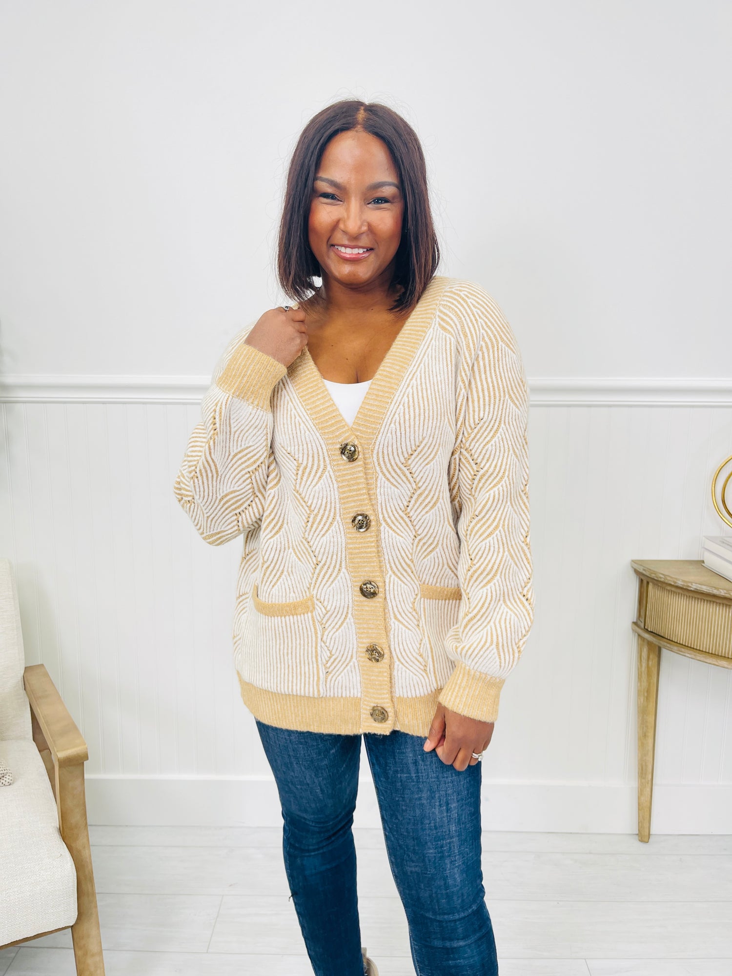 This cozy cardigan brings together a textured knit design with a chic button-up front, making it perfect for layering. The relaxed fit and soft fabric provide a comfortable feel, while the subtle pattern adds a touch of stylish detail. Whether you're lounging at home or out for errands, this piece is a versatile wardrobe essential.