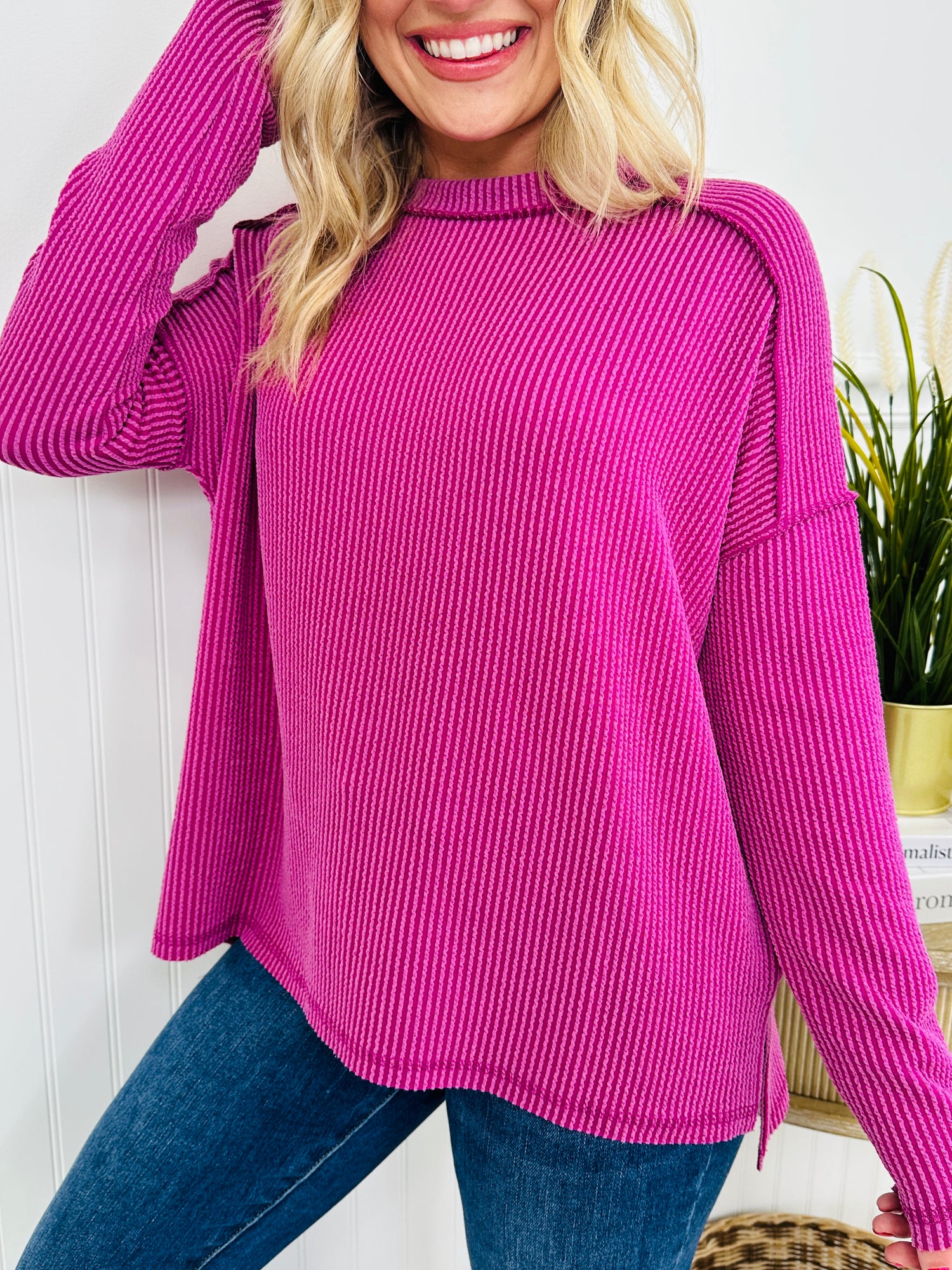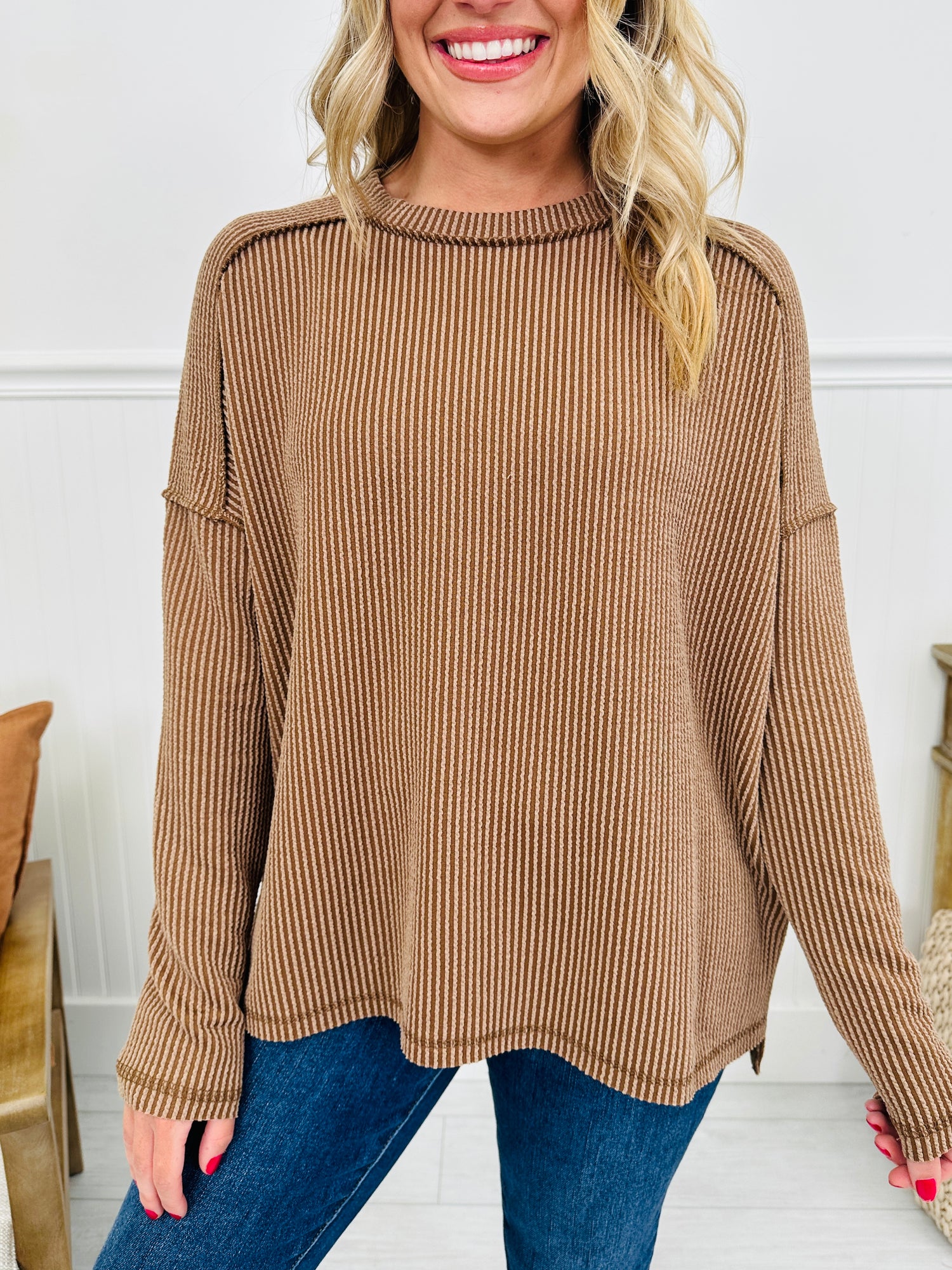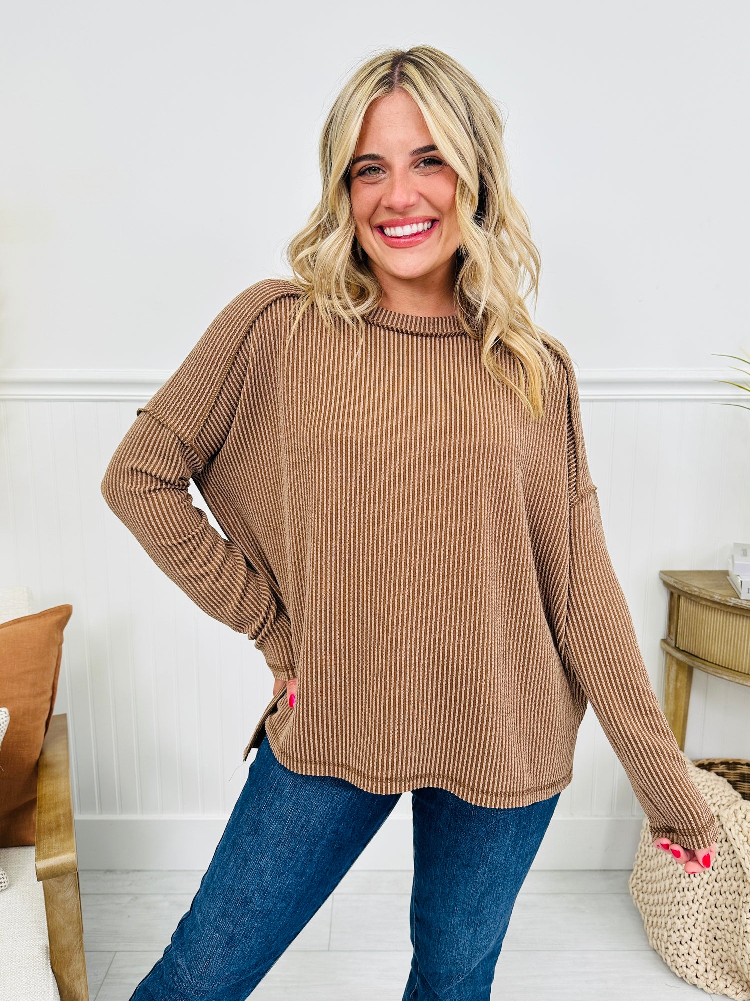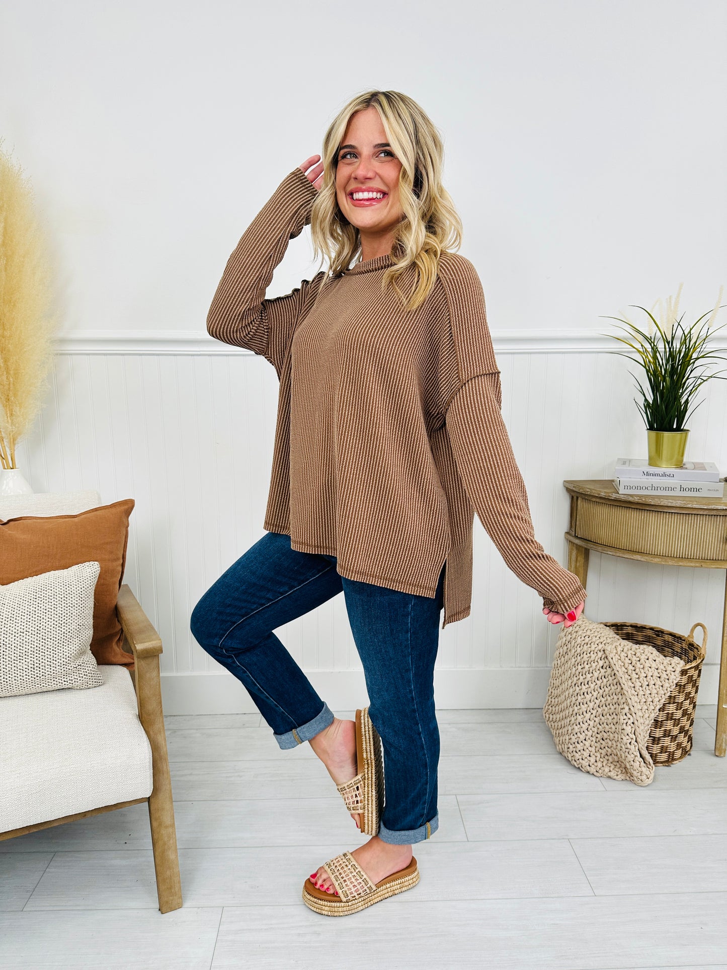 This new arrival is giving main character energy and you are going to want to wear it every single day! This top is part of our fall collection and is the perfect long sleeve, lightweight top to transition into the new season. It's made from our best selling, buttery soft, raised rib fabric that our customers rave about!