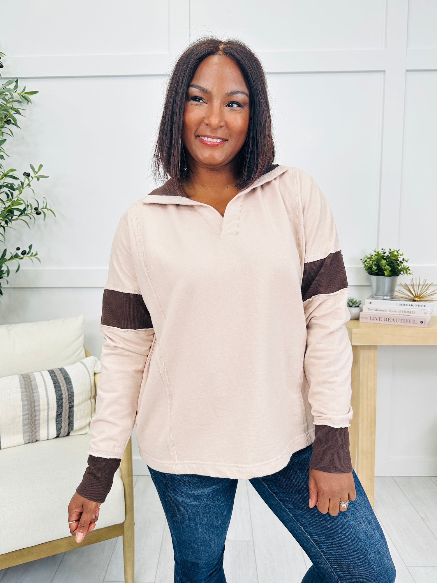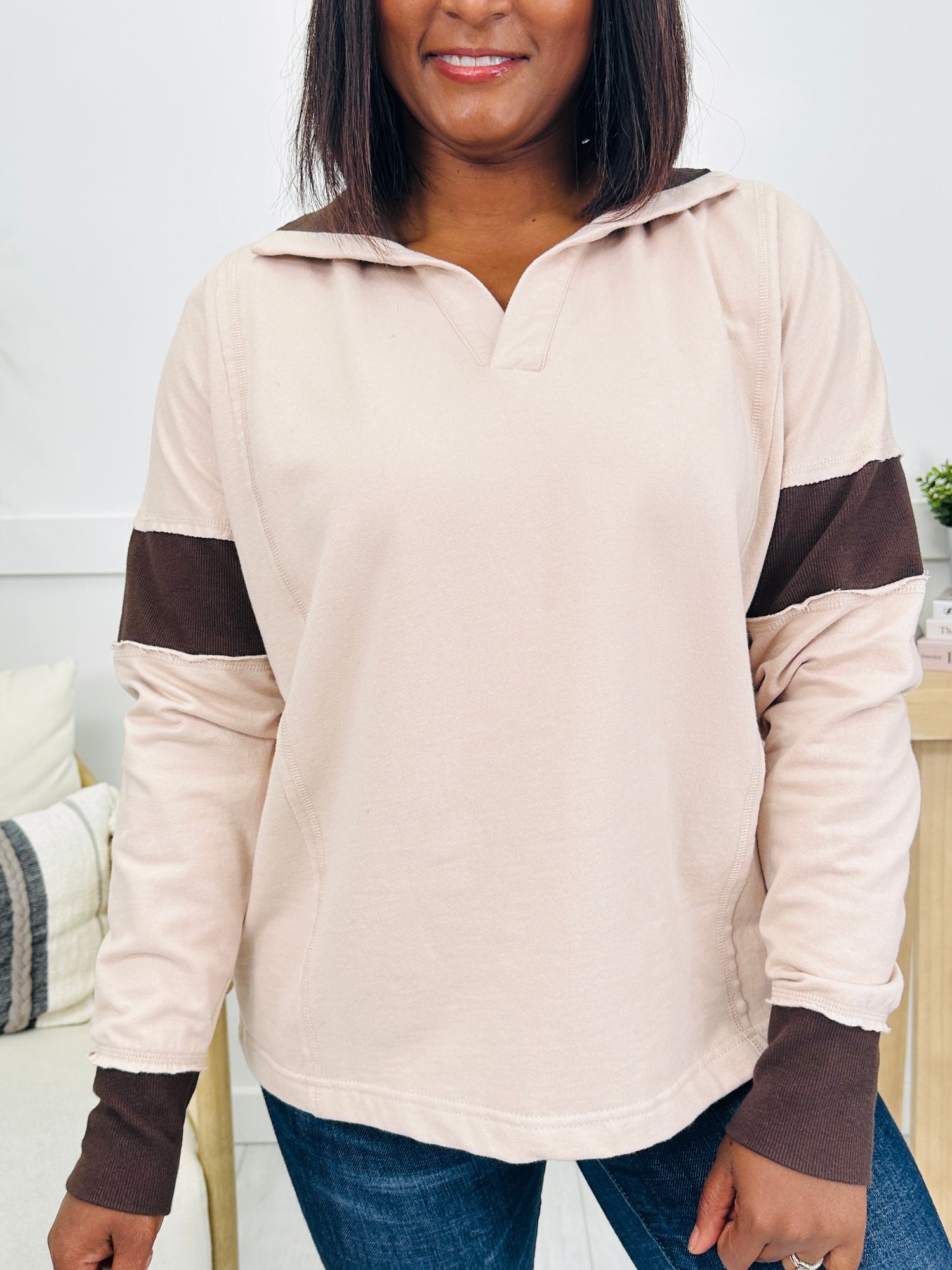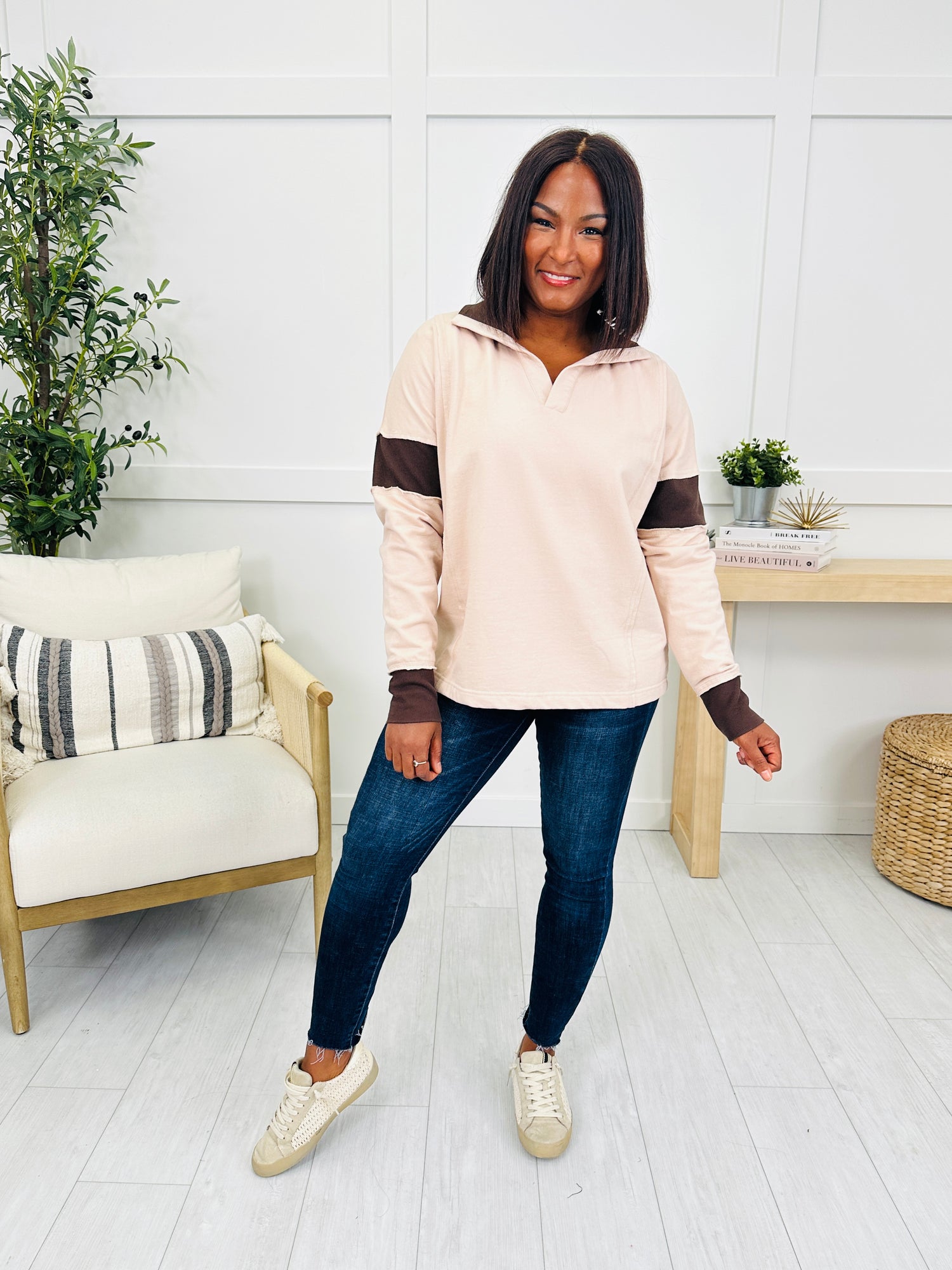 This soft pullover blends comfort with a touch of sporty charm. The contrast sleeve accents and cuffs add eye-catching dimension, while the split collar neckline brings a laid-back feel that’s easy to style. With its relaxed, casual fit and smooth stitched details, this piece makes everyday dressing effortlessly comfortable and cute.