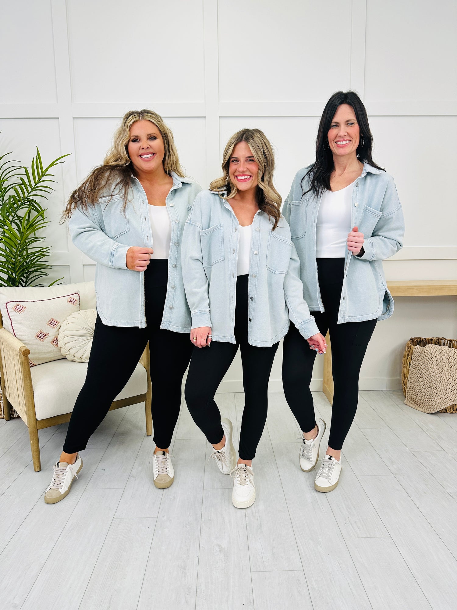 It's back! Our fastest selling jacket is finally back in stock and just in time for fall and you will want to wear it everywhere! The mineral washed finish gives the appearance of a trendy denim jacket but has the softness of your favorite shacket! It is so comfortable and the perfect layering piece to pair with jeans or leggings this season! It is versatile to transition into multiple seasons, too! This oversized jacket is flattering on every body type! Get this staple piece in your wardrobe while you still can!