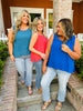 This lightweight, comfortable, and breathable top can be worn with jeans, white denim, shorts, and even leggings. It is the most versatile top you will own this season. It is flattering on every single body type and is made from our best selling airflow material. You will want to wear this top every day, so you might want to get multiple colors, and at only $28, you can get as many colors as your heart desires!