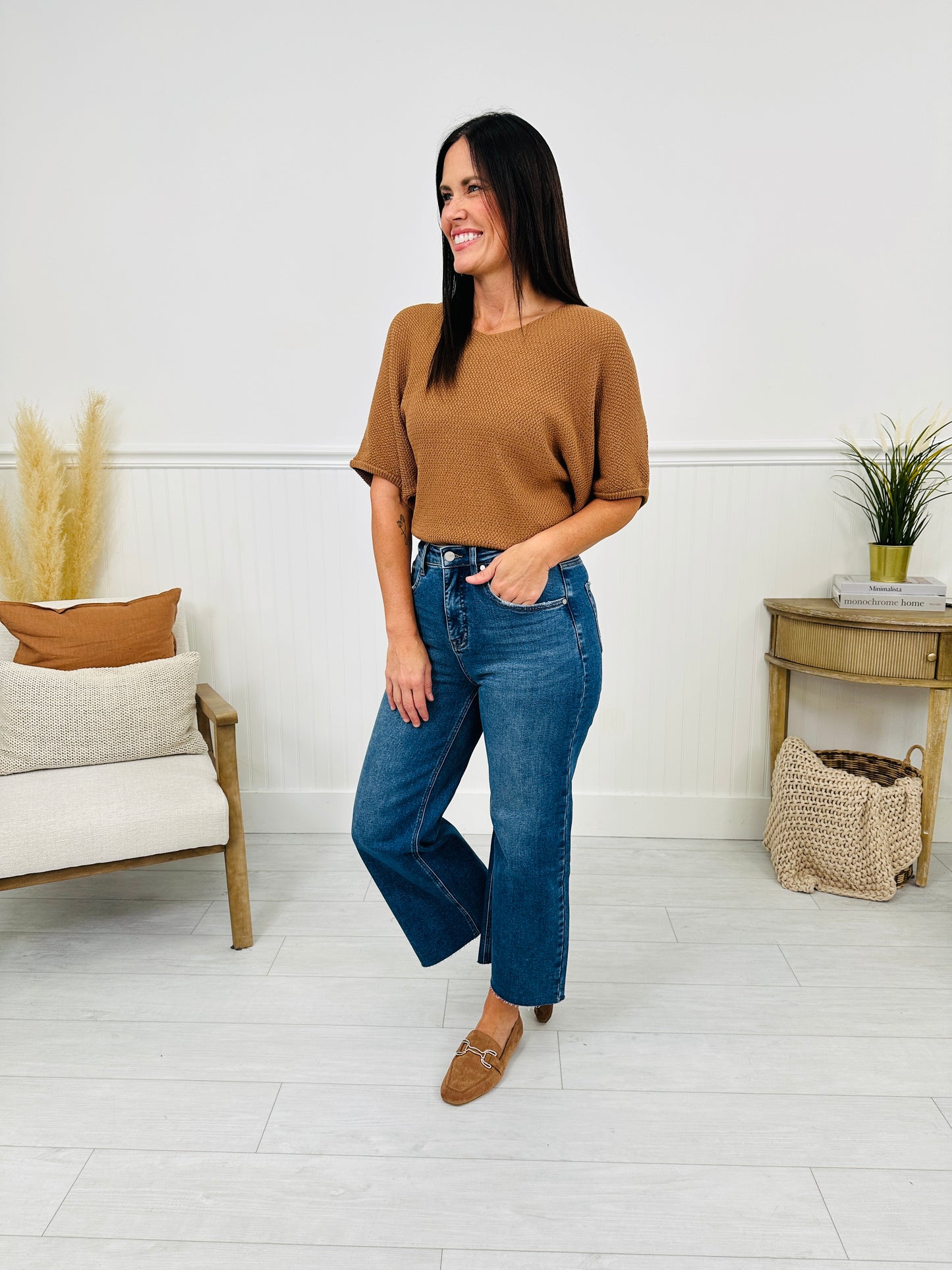 Wide leg crops are trending for fall. These jeans look amazing with booties, wedges, mules, and sneakers and with zero holes or distressing you can wear them from work to weekend to everywhere in between. We love the dark and dreamy wash for fall!