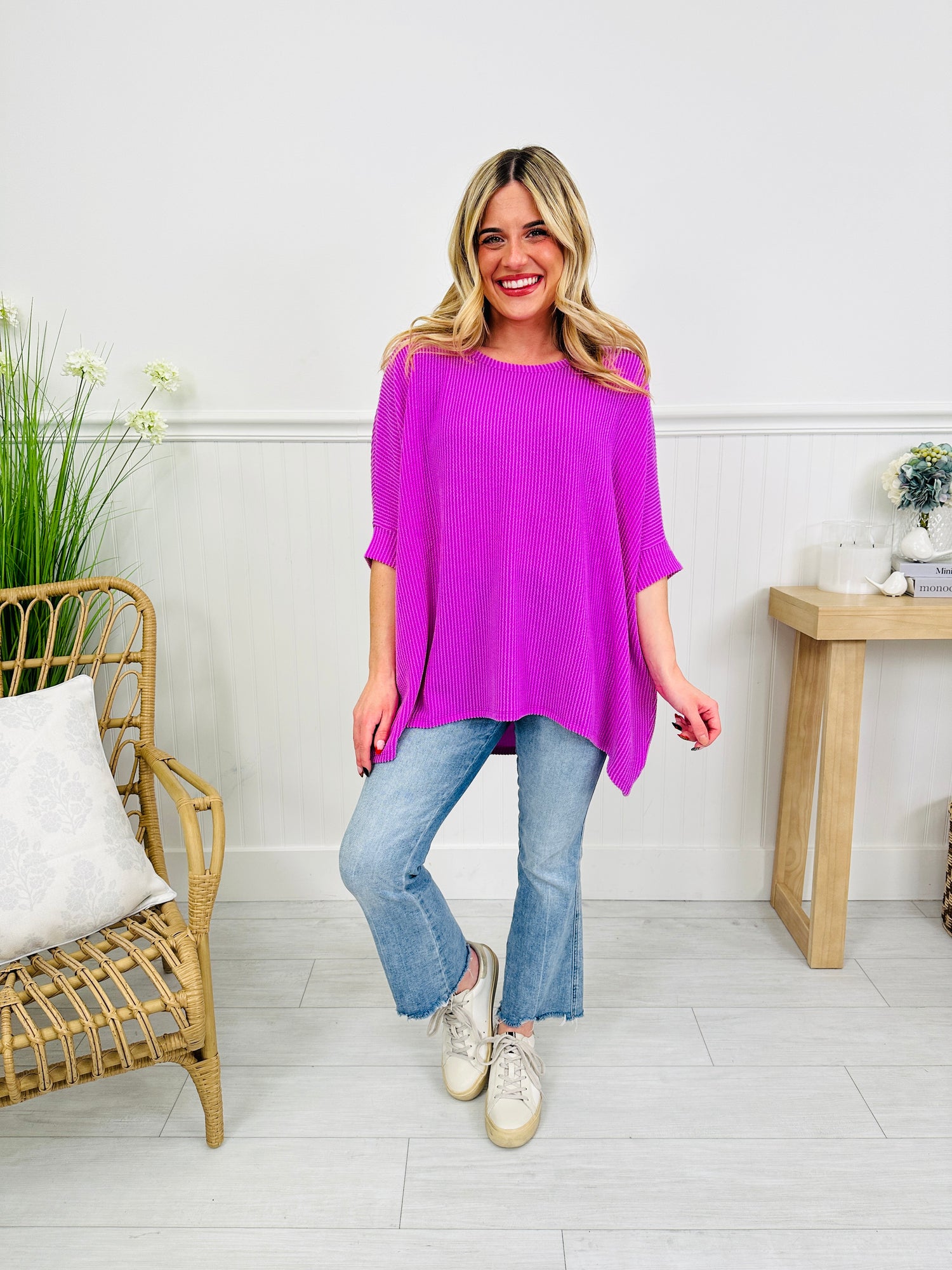 The bright side of the year is coming soon and this new top is the perfect addition to your wardrobe that you'll want to wear on repeat this season. It's made from our best selling raised rib material that our customers rave about. The fabric is buttery soft and stretchy and the fit is flowy and flattering on every body type.