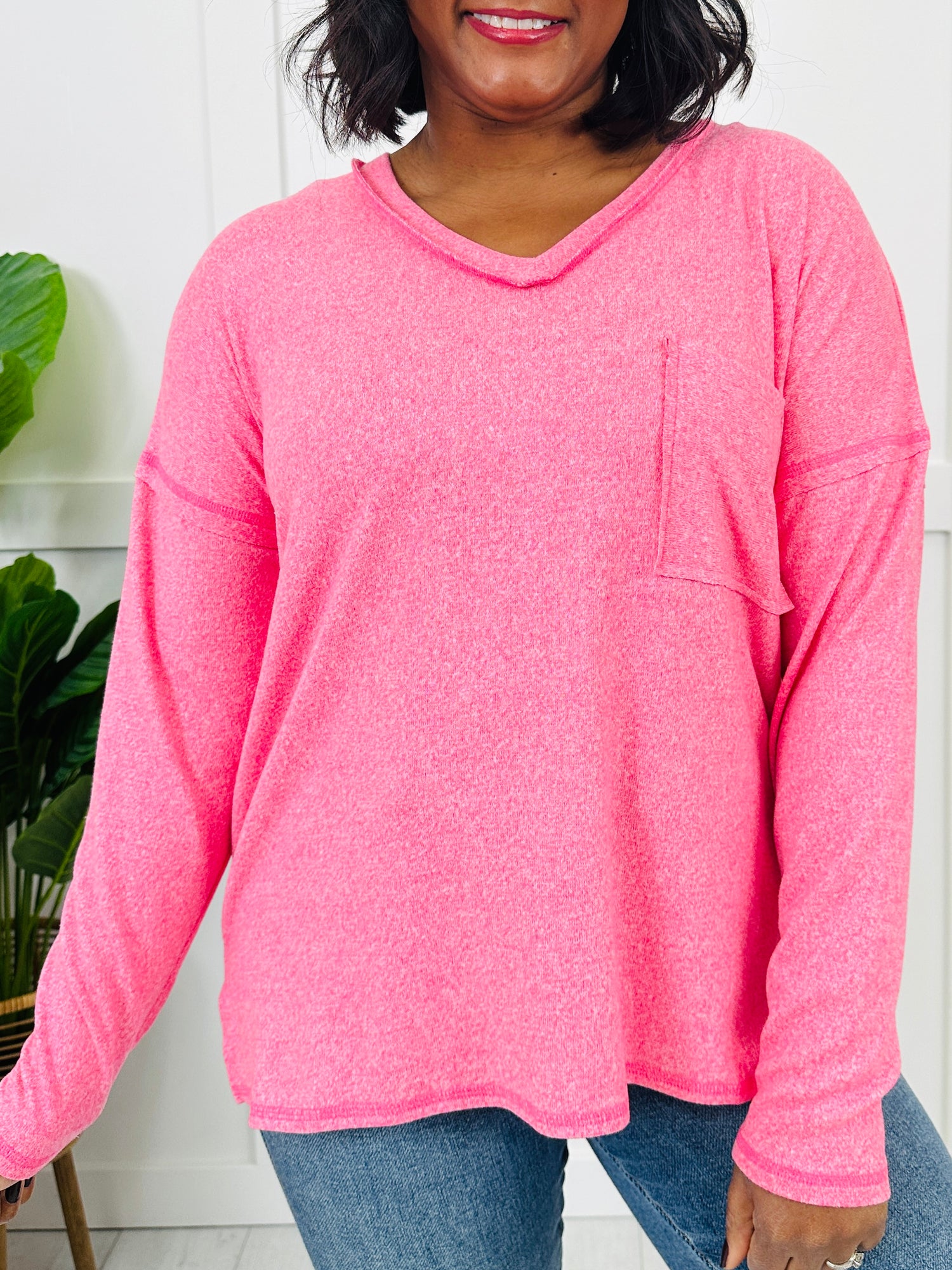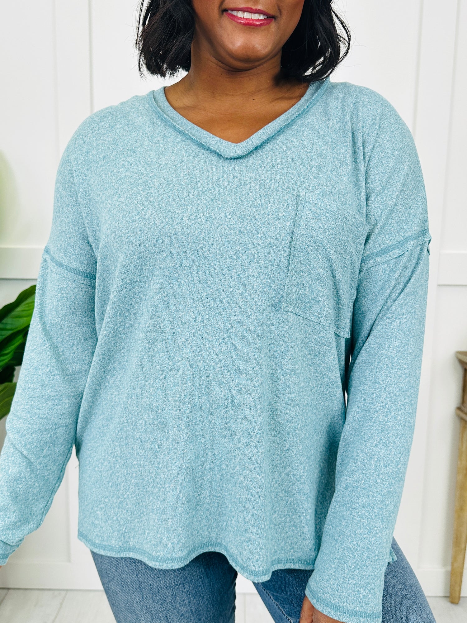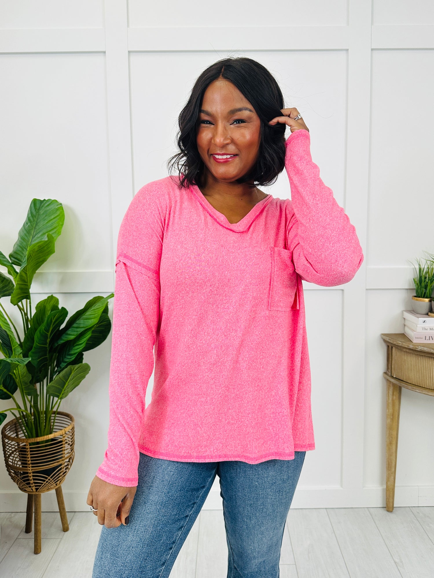 This ultra soft top keeps things effortlessly cute with a clean V-neckline and a simple chest pocket that adds just the right touch of detail. The relaxed, easy shape makes it a go-to for everyday wear, and the heathered look paired with the reverse stitching give it that laid-back, lived-in vibe. Plus, it comes in several colors so you can grab all your favorites!