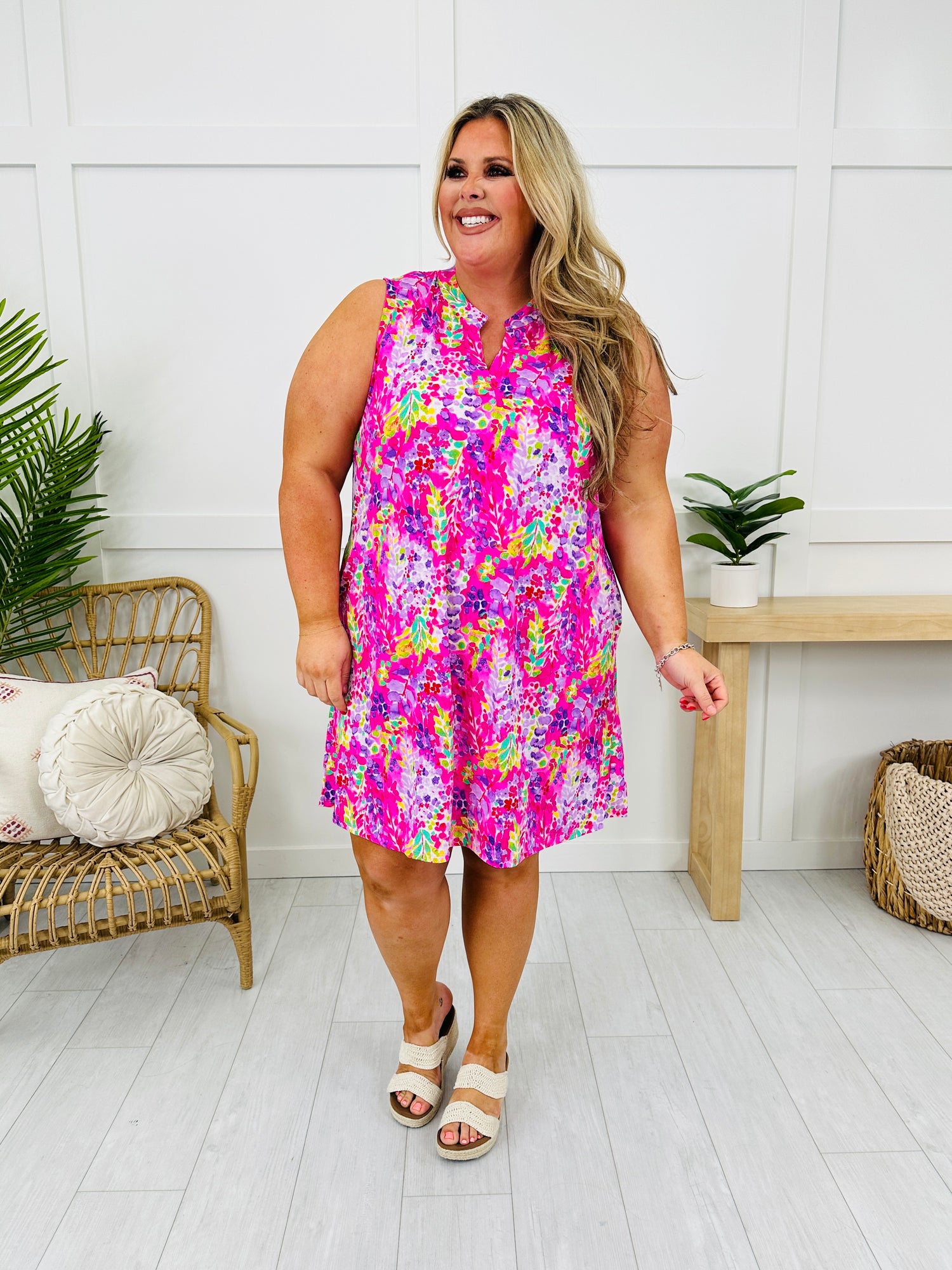 The Palms and Plans dress is officially our best selling dress this season. It's made form our best selling wrinkle material, which is cool to the touch and perfect for warmer weather! Our customers rave about this amazing material! This dress is flowy and flattering on every single body type. Did we mention it has pockets? This dress is so versatile, too! You can dress it up to brunch, church, wedding showers, and other events, and because it is wrinkle free, you can also throw it in bag and use it has a bathing suit cover up.