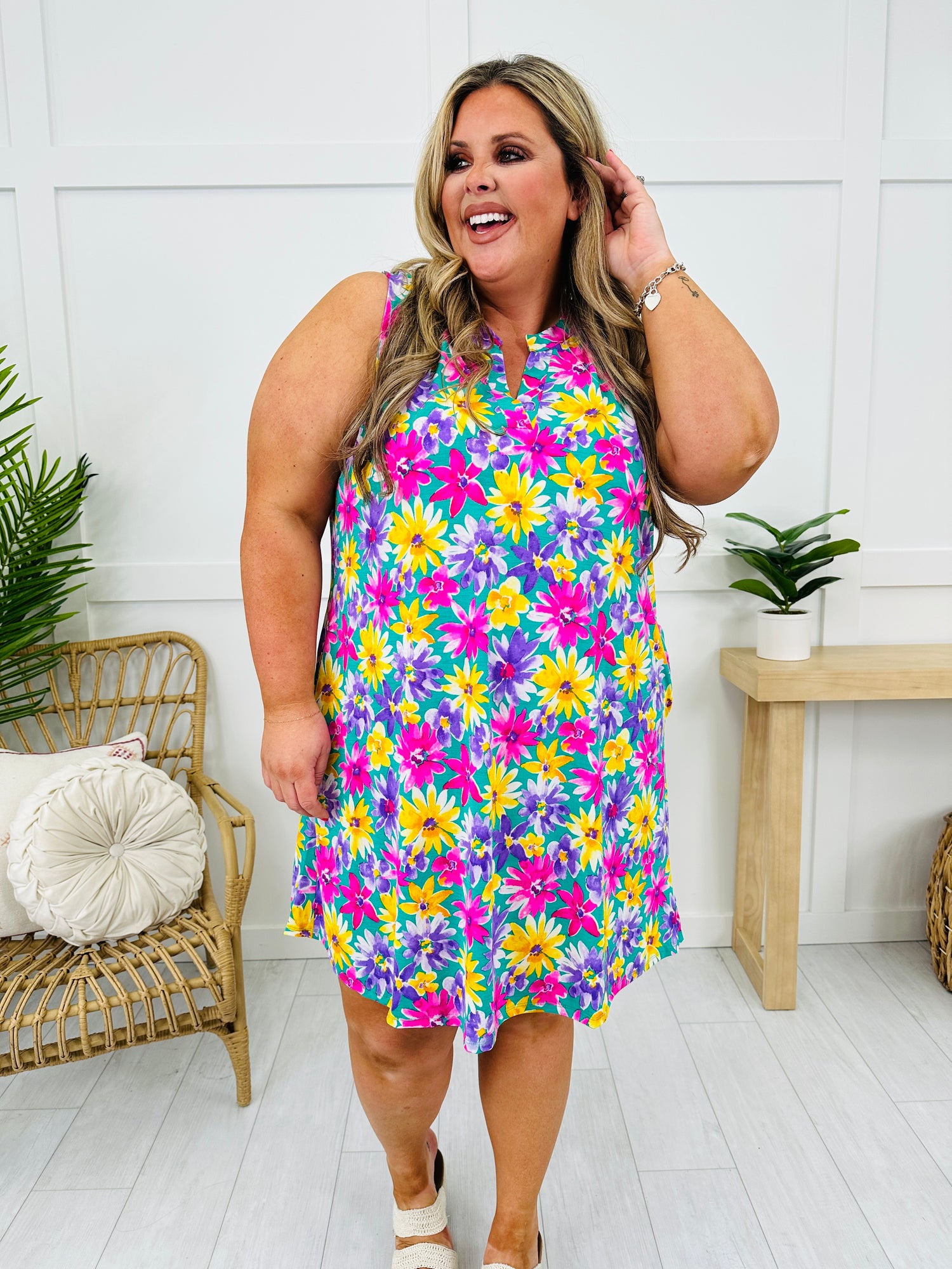 The Palms and Plans dress is officially our best selling dress this season. It's made form our best selling wrinkle material, which is cool to the touch and perfect for warmer weather! Our customers rave about this amazing material! This dress is flowy and flattering on every single body type. Did we mention it has pockets? This dress is so versatile, too! You can dress it up to brunch, church, wedding showers, and other events, and because it is wrinkle free, you can also throw it in bag and use it has a bathing suit cover up.