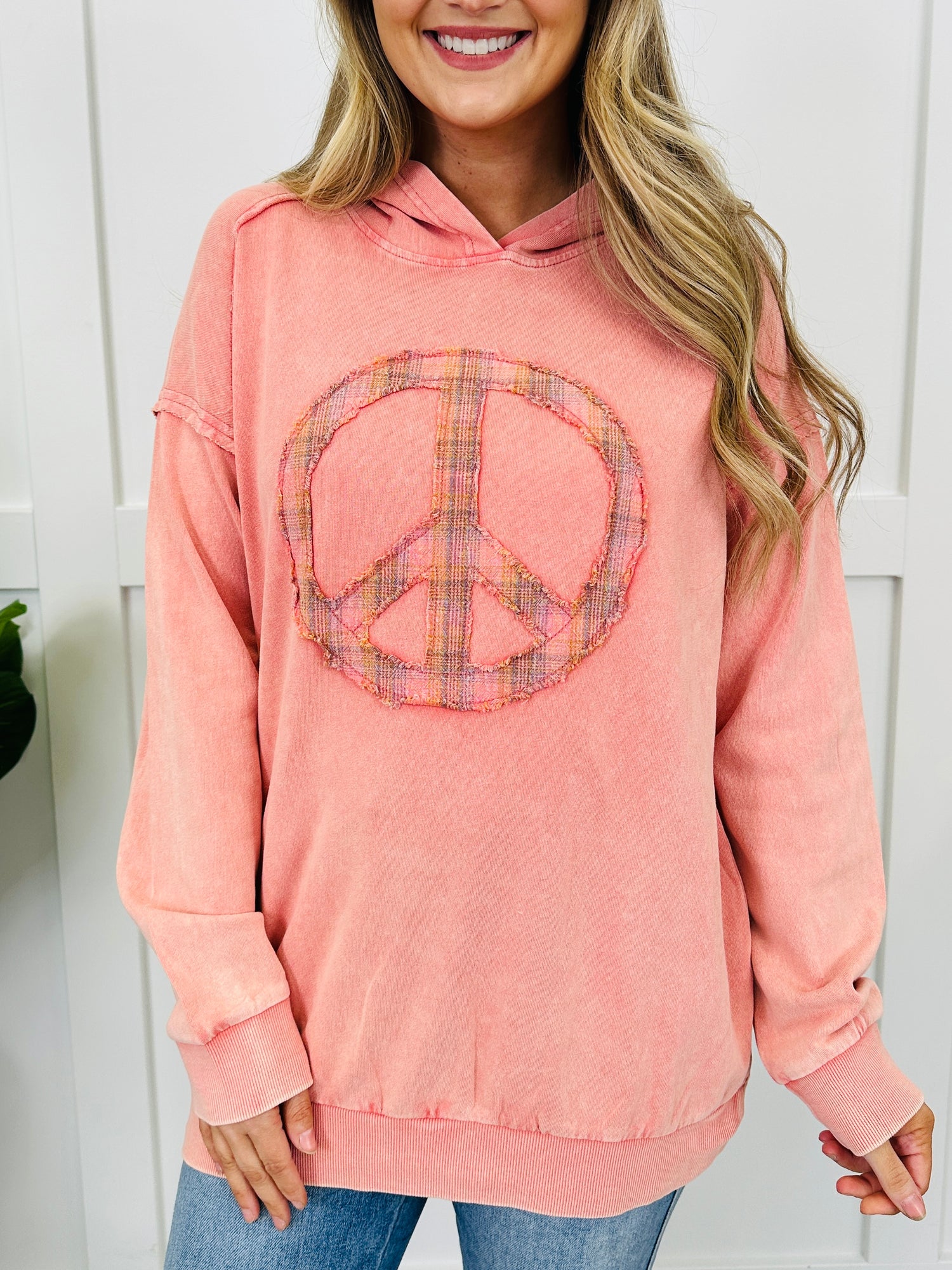 Make a statement in the cutest way with this hoodie featuring a bold plaid peace appliqué that pops against the washed finish. The hooded neckline and relaxed, easy shape keep it laid-back and wearable, while the banded cuffs and hem give it a polished, pulled-together feel.