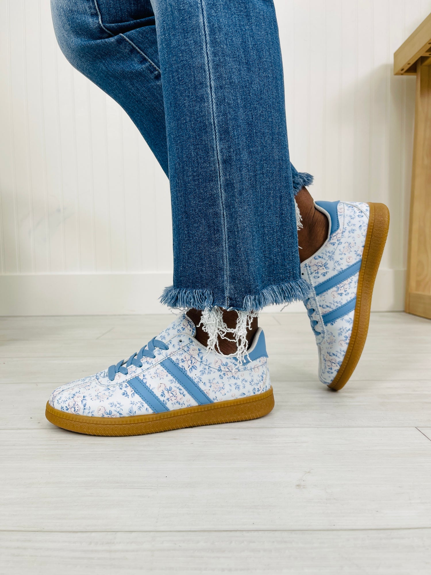 These cheerful sneakers bring a sweet, feminine twist to everyday style with their playful floral print and charming pops of color. The soft blue accents along the laces and stripes add a bright yet delicate touch that pairs effortlessly with casual looks. Finished with a classic sporty sole for comfort and easy wear, they’re the perfect blend of fun and functional for all your on-the-go moments.