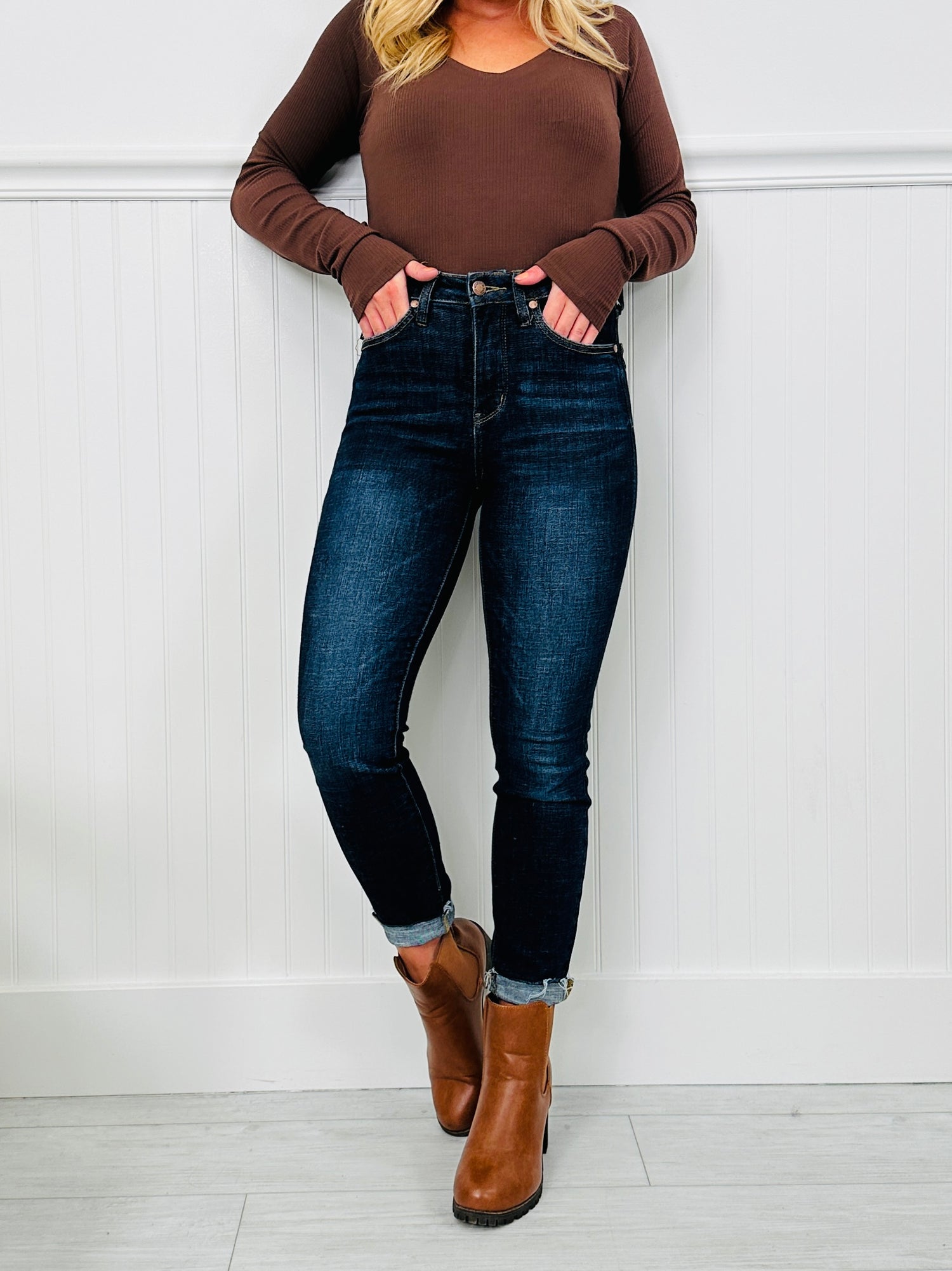 Our number one best selling pair of Judy Blue Jeans of all time are back in stock and just in time for fall! We have sold tens of thousands of pairs of these Judy Blue Skinny Jeans and our customers consistently come back for a second pair because they are THAT good and are sure to be your new go-to skinny jean.