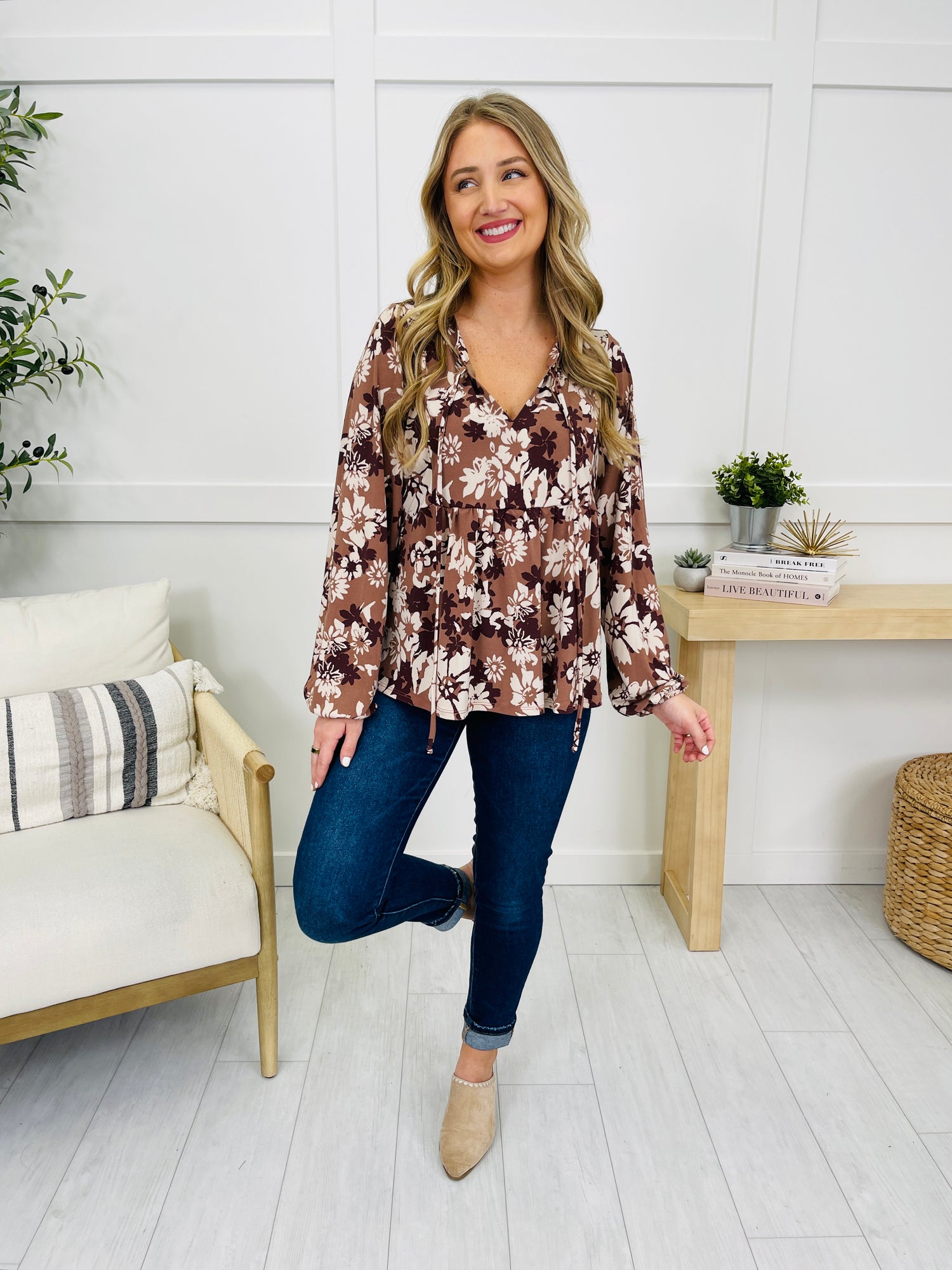 This floral top brings a charming mix of color and movement to your wardrobe. The split neckline with tie details adds a touch of femininity, while the tiered floral print creates a softly flowing silhouette that drapes beautifully. Designed with a relaxed fit, it’s perfect for pairing with jeans for a look that feels both effortless and put together.