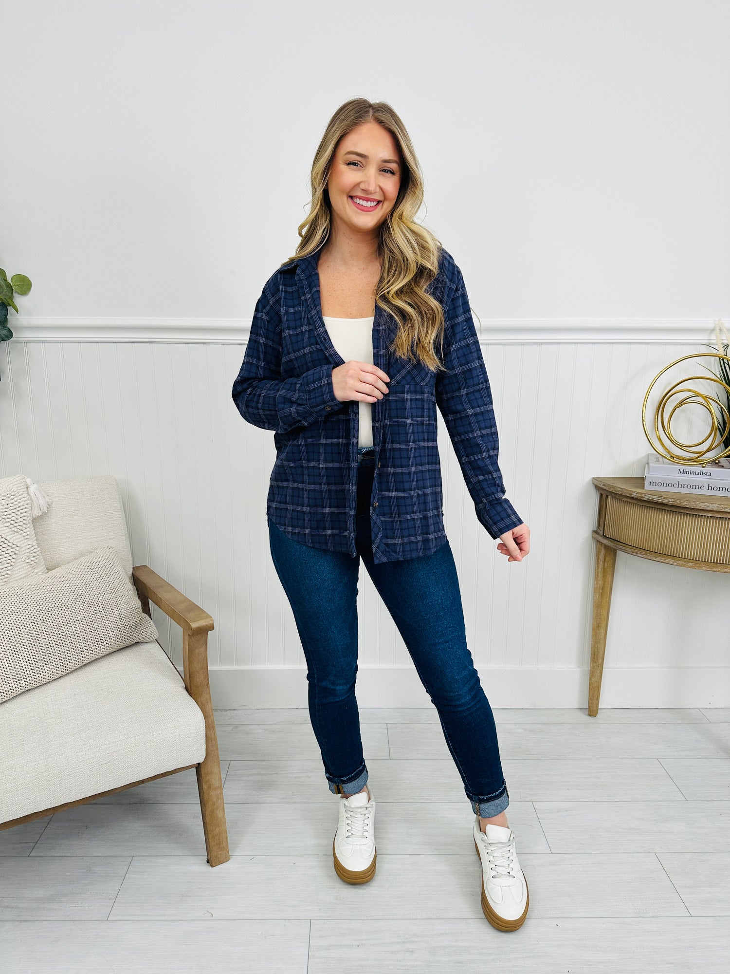 This timeless plaid top brings an easy, laid-back feel with its soft button-front design and casual relaxed fit. The subtle texture and clean lines keep it versatile, whether you style it open over a tank or wear it buttoned on its own. Finished with long sleeves and a slightly rounded hem, it’s a comfortable everyday layer you’ll reach for again and again.