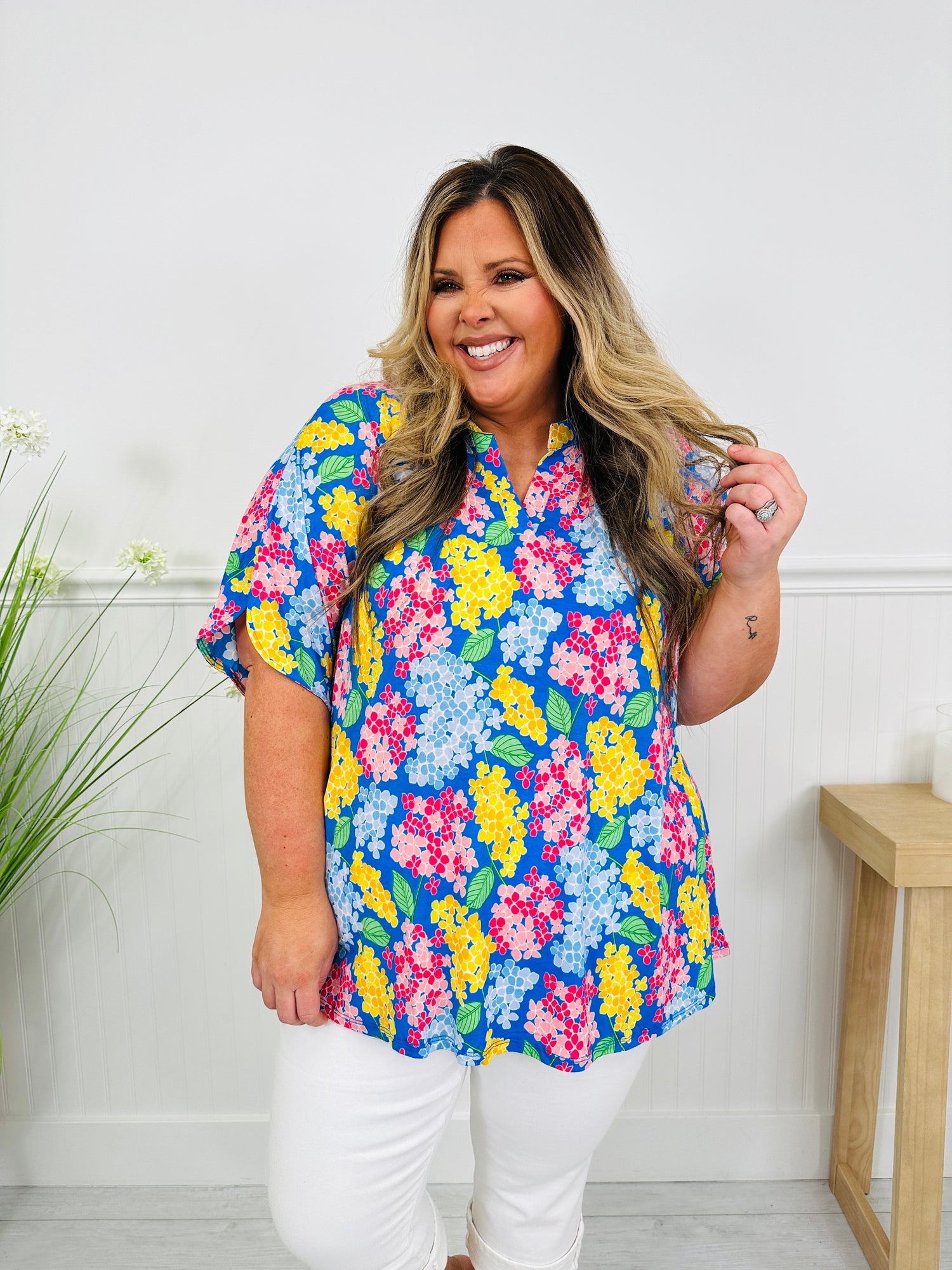 This new spring arrival will have you radiating sunshine everywhere you go. This best selling top is available in brand new spring prints that will bring a pop of bold into your spring wardrobe. This top is wrinkle free, which means it's perfect to pack in a suitcase or bag. It's easy to throw on and pair with all of your favorite bottoms-- shorts, jeans, white denim, and even leggings. Dress it up or down for multiple, versatile looks this season.