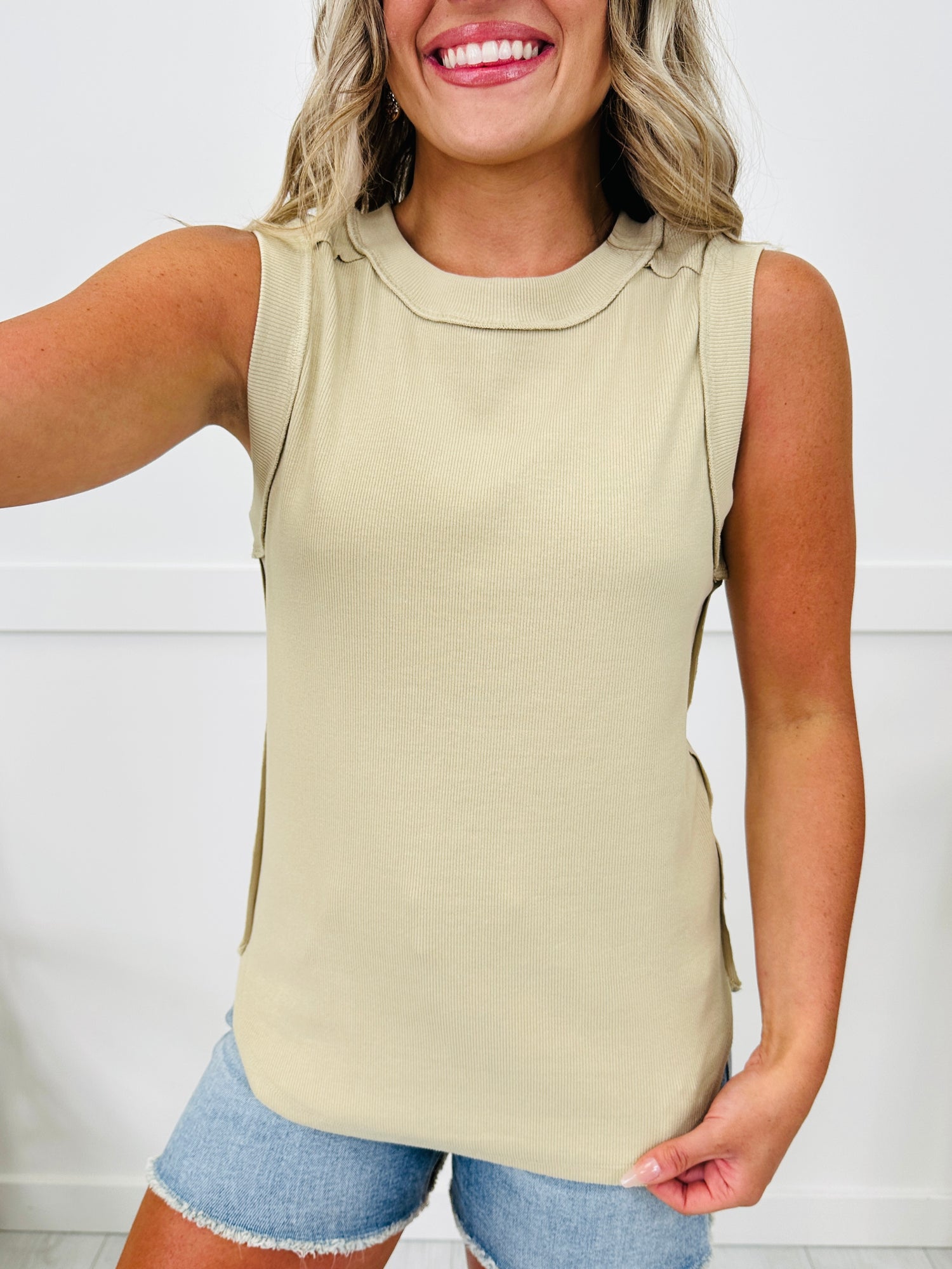 The material is super soft and stretchy. The tank top is slightly oversized and flattering on every single body type. We love the wide straps that are bra strap friendly!  The reverse hem stitching gives this top a high end design.   Grab the last restock of our best selling Basic Babe Tank Top while you still can!