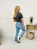 Our best selling kick flare jeans are finally back in stock, but only while they last! These will be your new go to pair of cropped jeans heading into fall!Β They can be dressed up or down and because they are non-distressed, they can be worn from work to weekend to everywhere in between. These jeans are so stretchy, so soft, and so comfortable-- you will never want to take them off! They are flattering on every single body type and will be your most worn pair of jeans this season!Β
