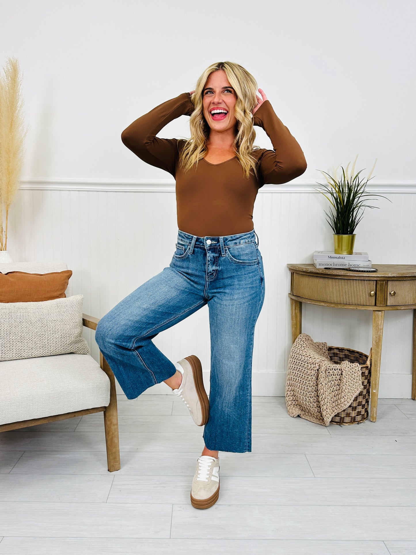 You'll shoot straight to the top this season in these new wide leg cropped jeans! These jeans are so comfortable and will you give you the most amazing confidence boost. They feature our viral tummy control panel that is going to suck you in and slim you out in all of the right places! These jeans are SO flattering on every single body type.