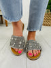 These sandals are the perfect mix of glamour and comfort. The detailed rhinestone embellishments add a sophisticated touch, making them ideal for both casual and dressier outfits. Slip them on for a laid-back yet elevated look, whether you're lounging by the pool or enjoying a special occasion.