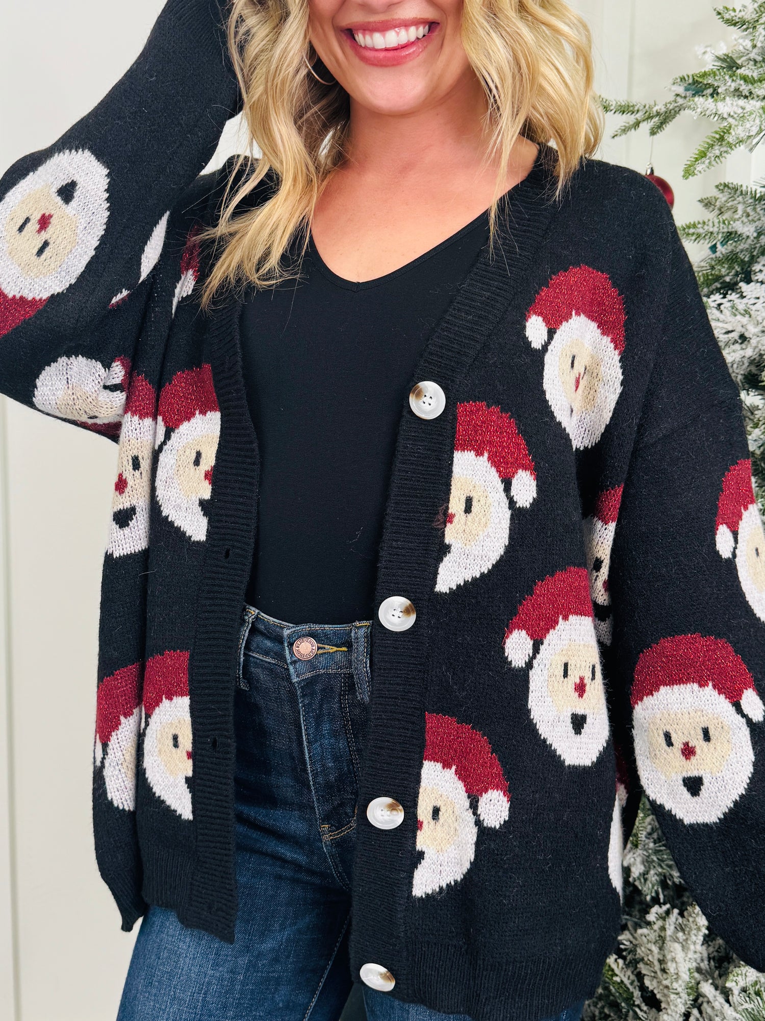 Santa stop here and add this new Christmas cardigan to your cart to spread some Christmas cheer! This new holiday arrival is the definition of festive and fun with its trendy Santa print and cozy, oversized fit. Made from a soft, stretchy knit, it’s the perfect layer to keep you comfy and cute through all your holiday celebrations.